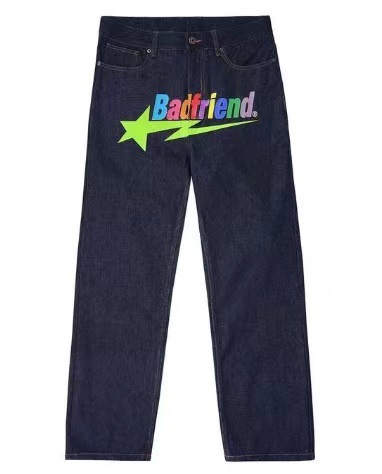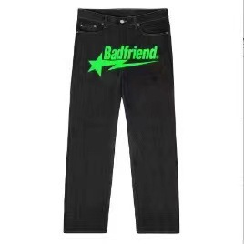 2025 국경 유럽 및 미국 스타일의 편지 인쇄 청바지 남성 하이 스트리트 패셔너블 브랜드 루즈 스트레이트 캐주얼 트렌디 팬츠스토어 가기