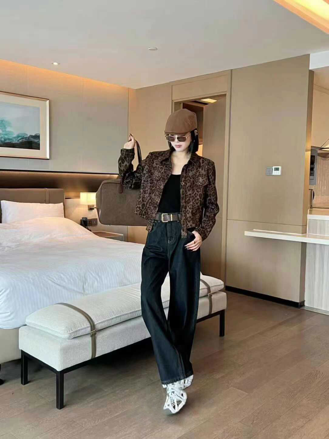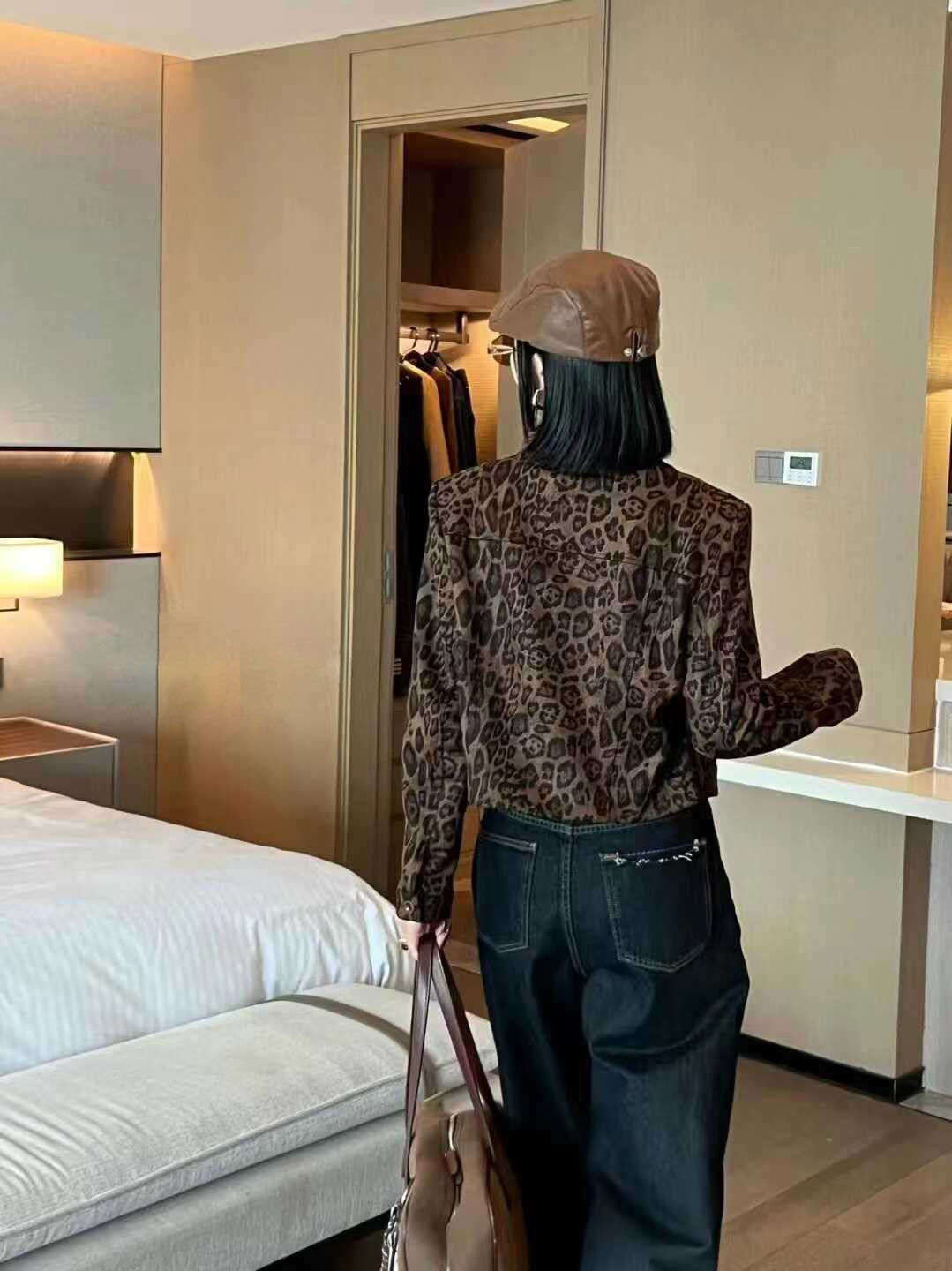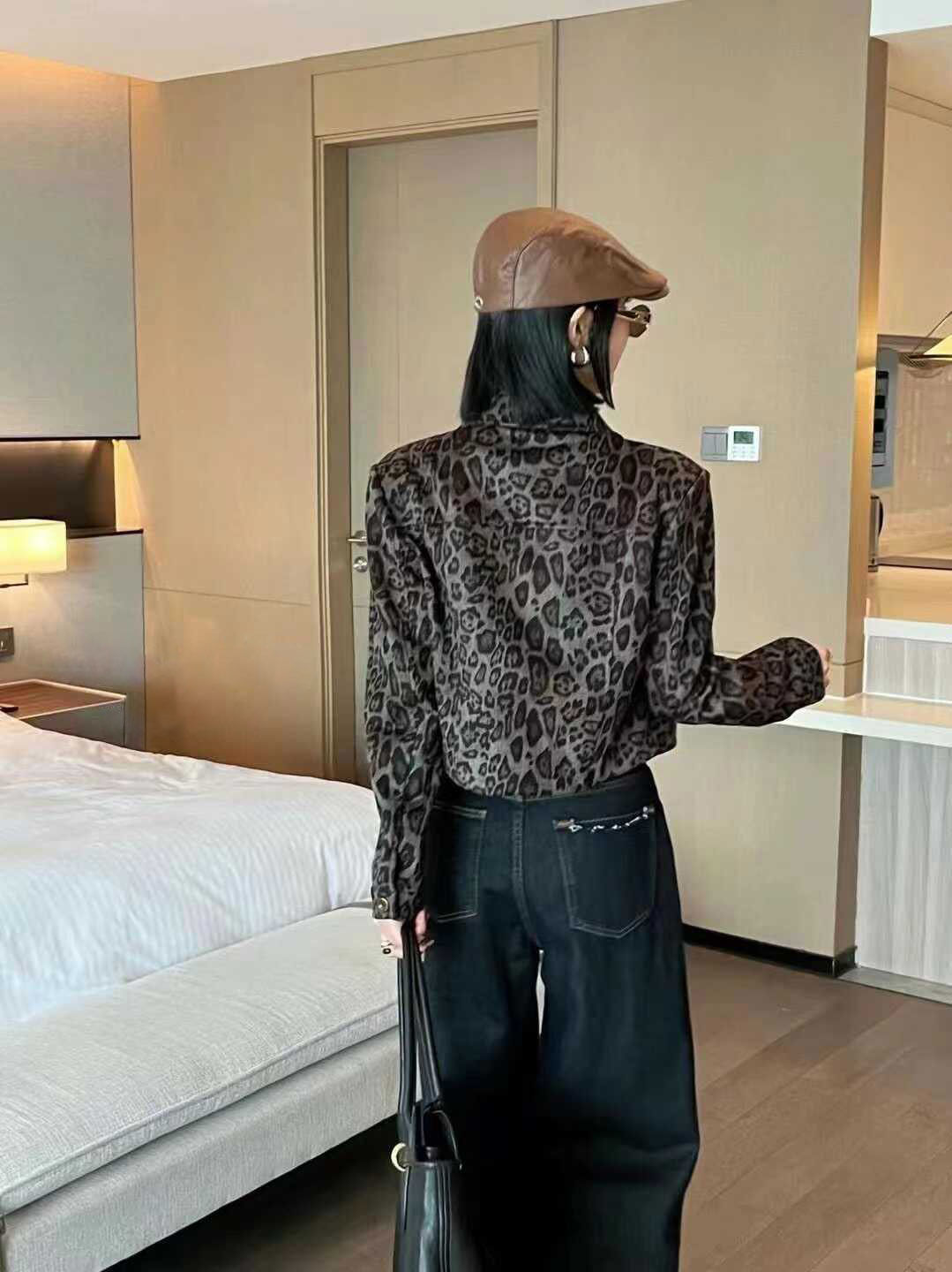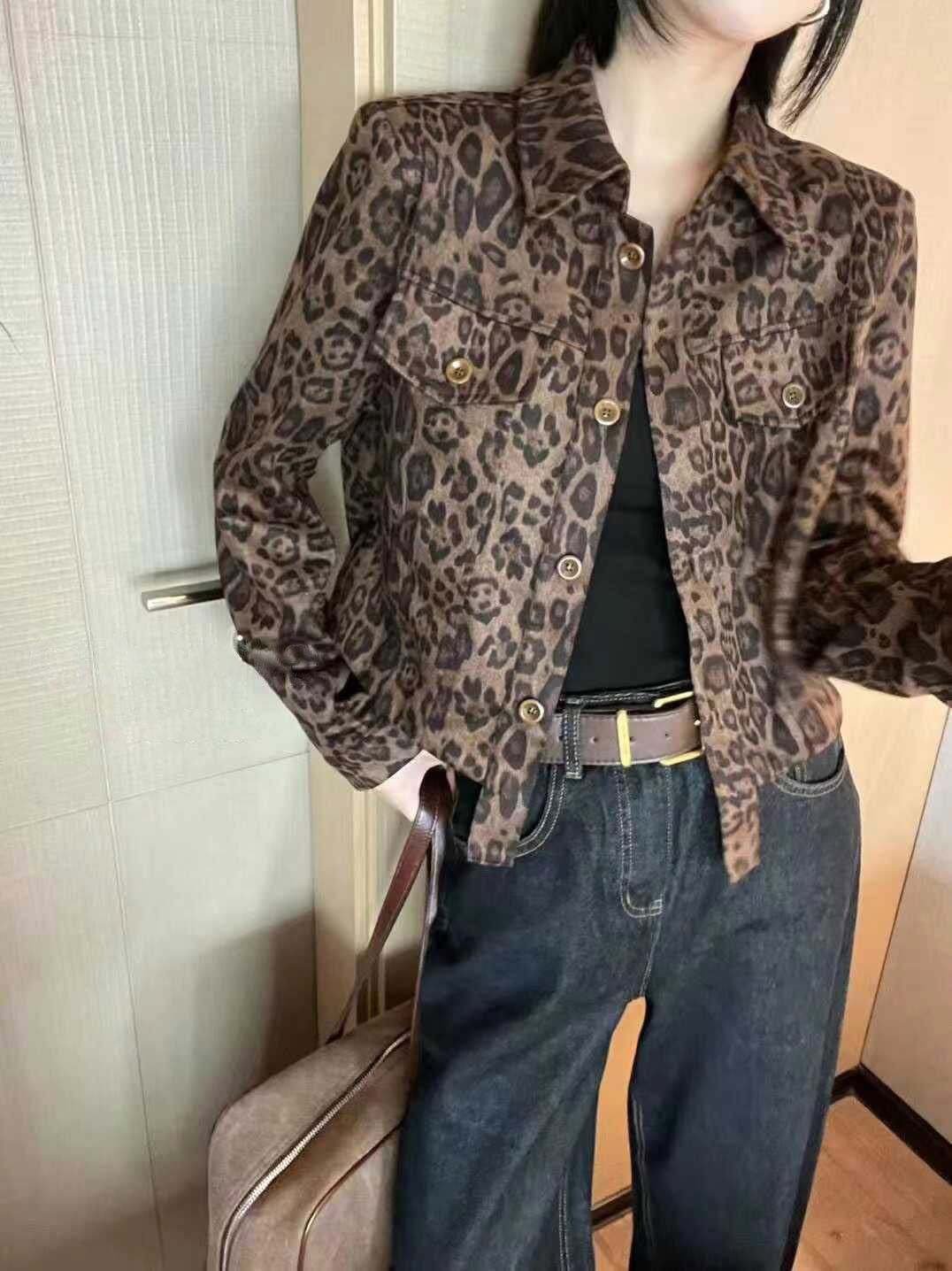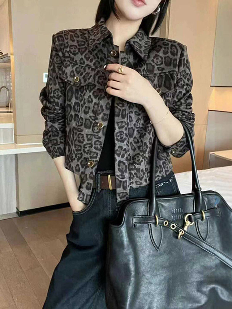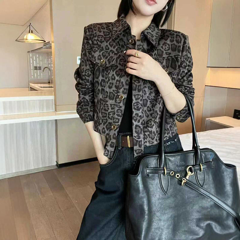 유럽 역 2025 가을 새로운 패션 레오파드 무늬 옷깃 쇼트 코트 여자 유럽식 올 매치 재킷 탑