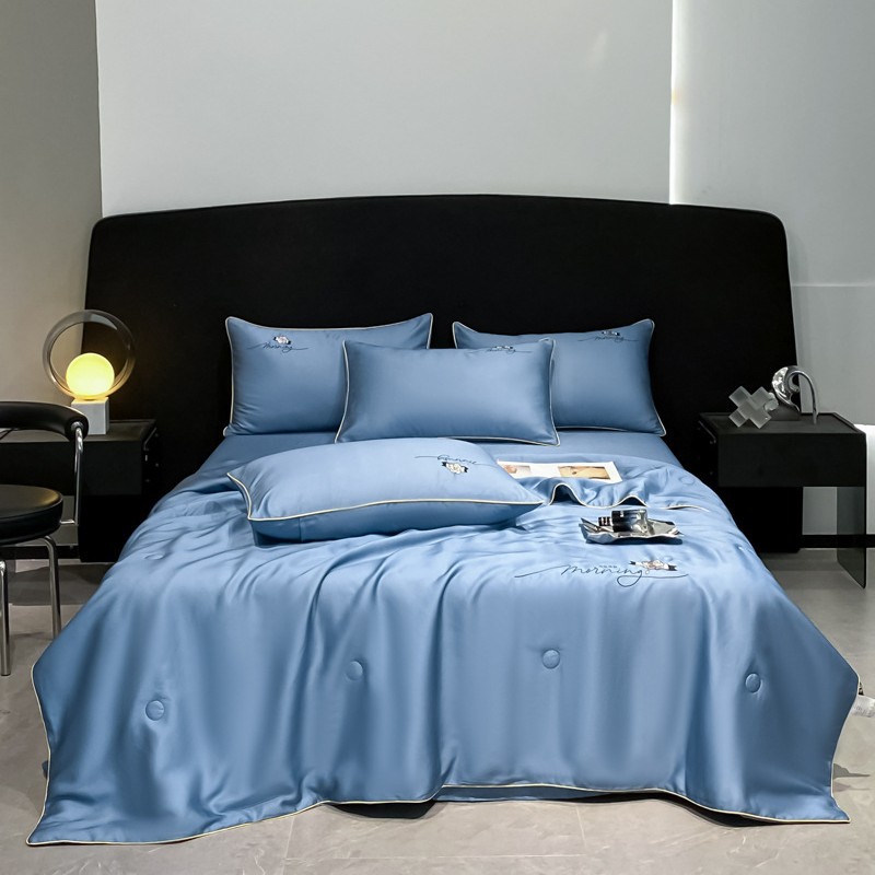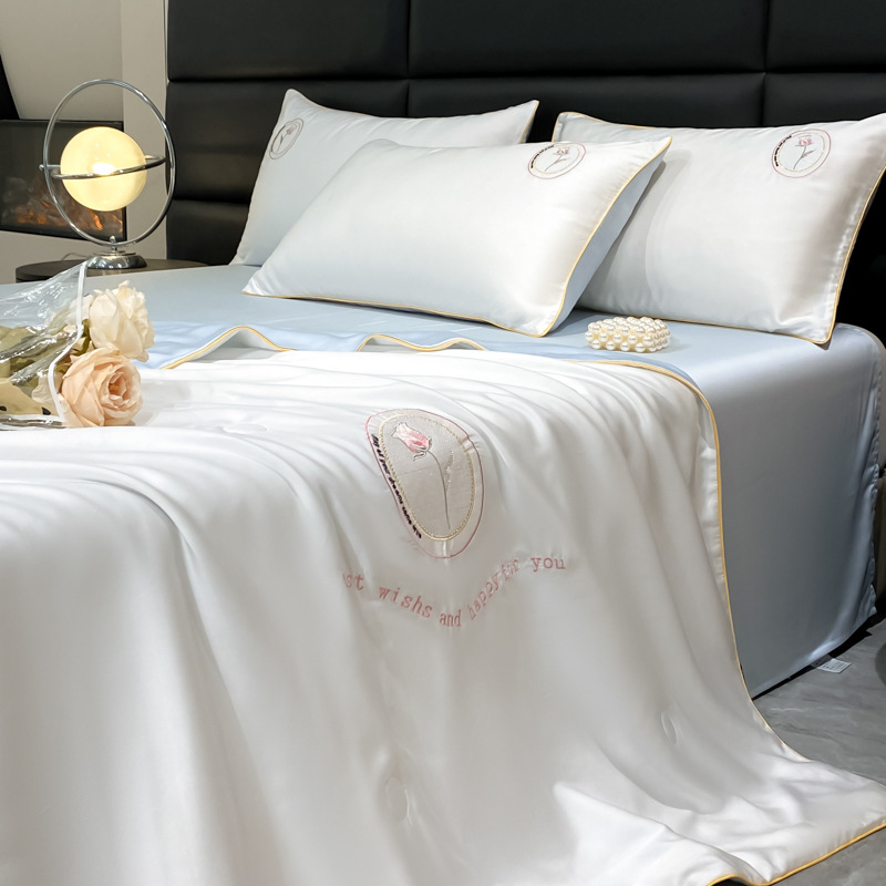 세탁 가능한 텐셀 여름 퀼트 4피스 세트 세탁기로 세탁 가능한 실크 여름 냉각 퀼트 에어컨 퀼트 여름 용품 싱글 및 더블 얇은 이불