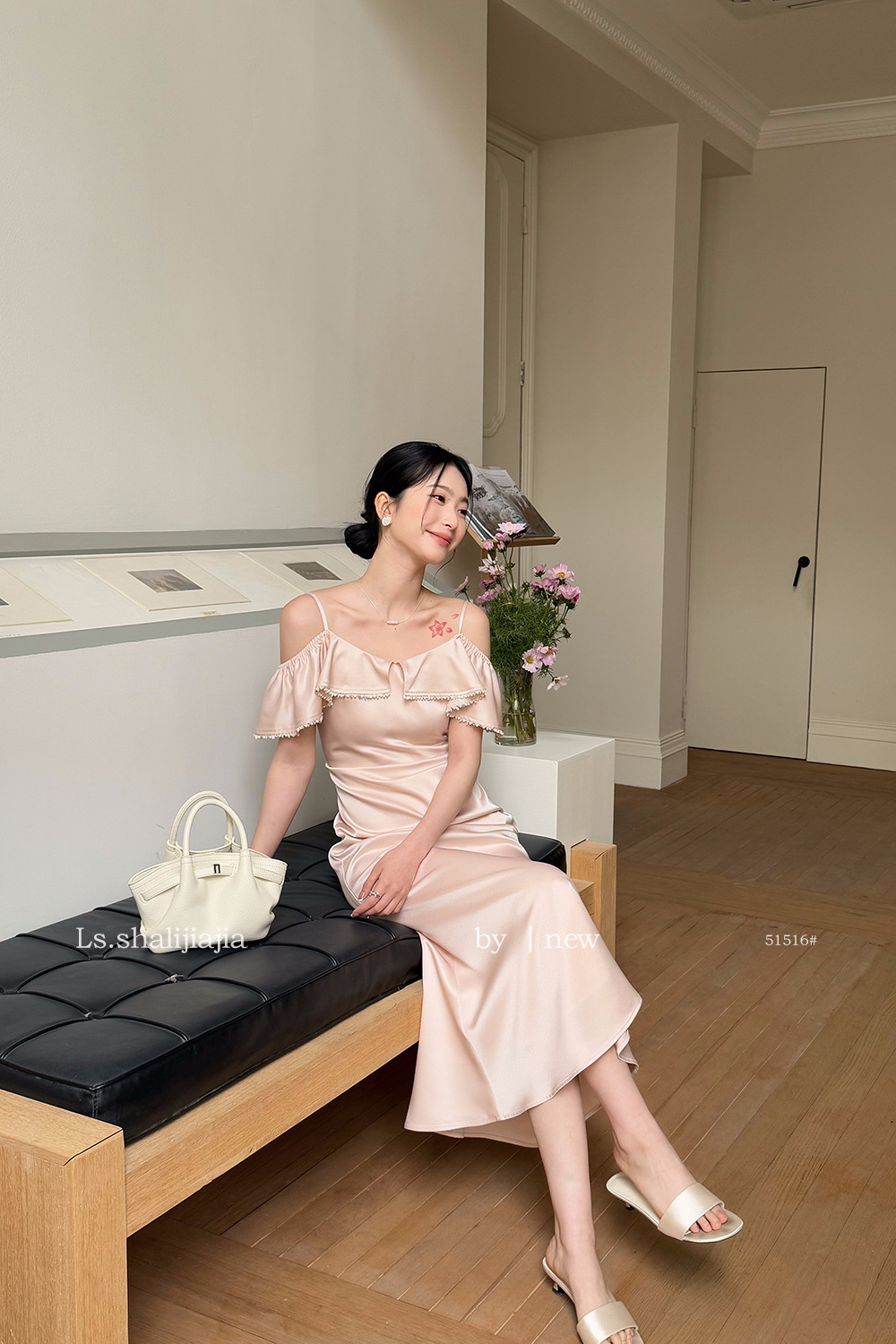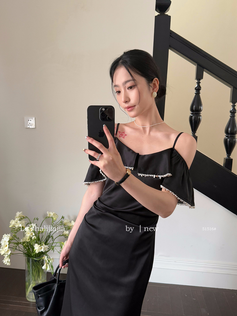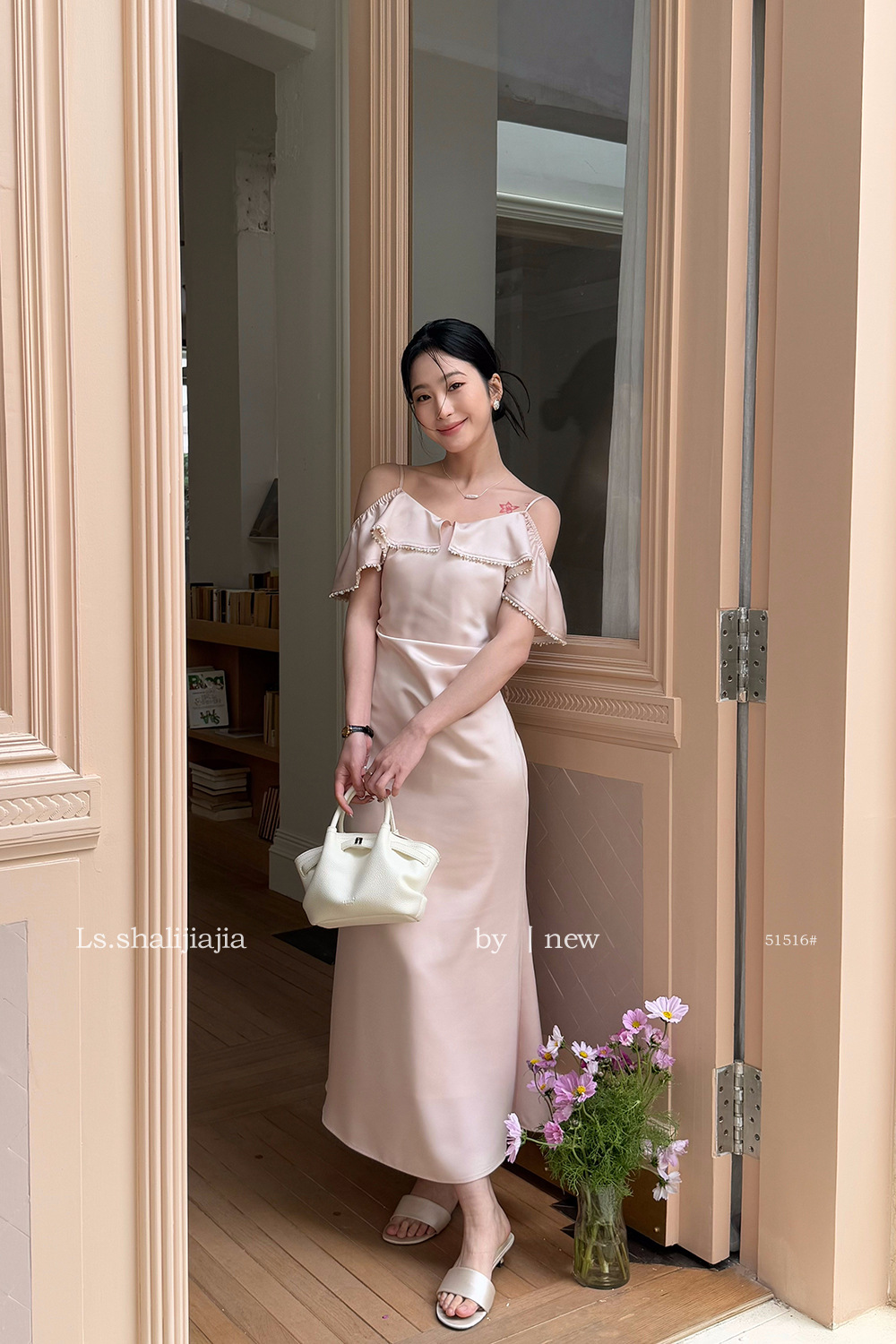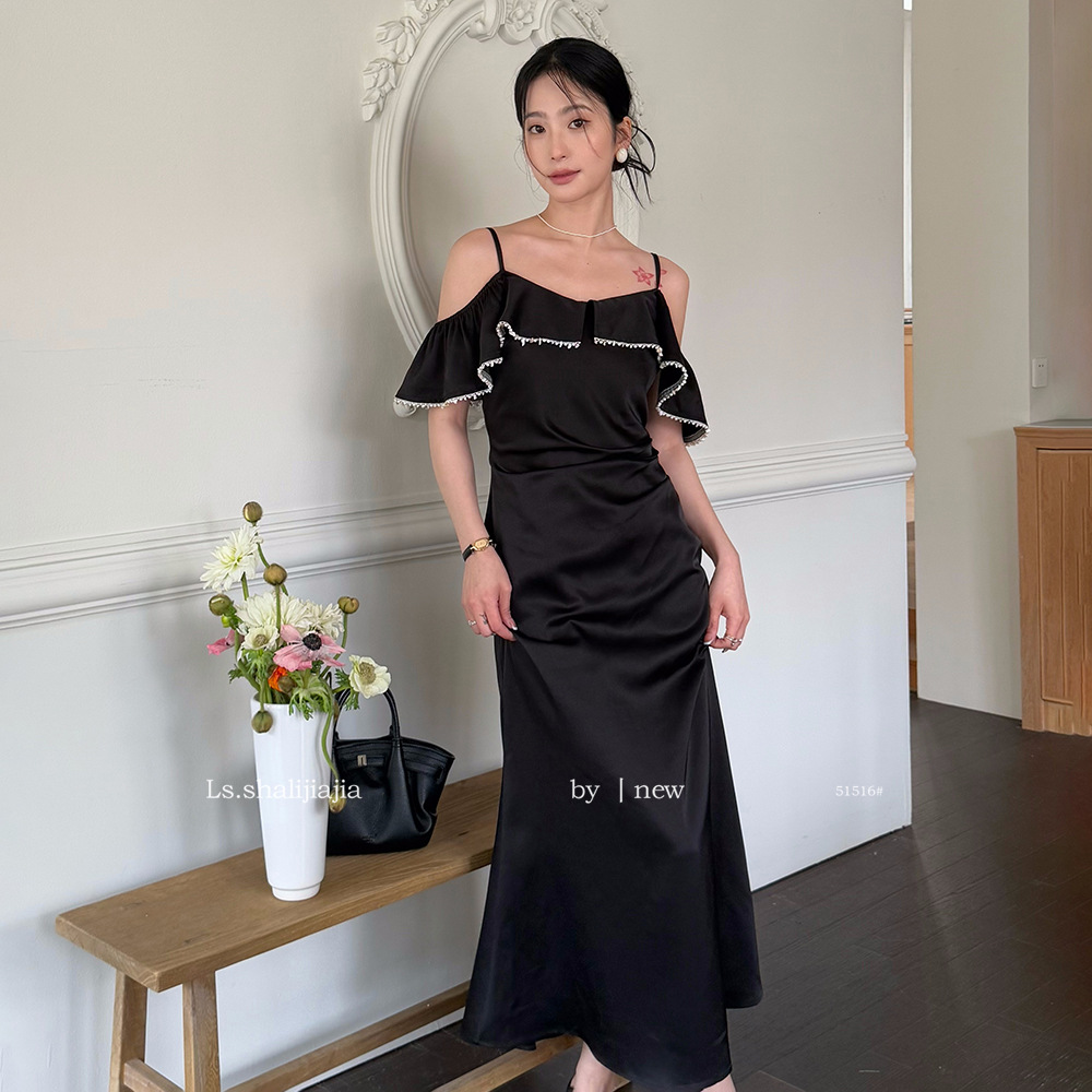LS to 프랑스 기질, 2025 년 봄/여름 새로운 여성 원피스 51516 # 원피스 어깨 소매