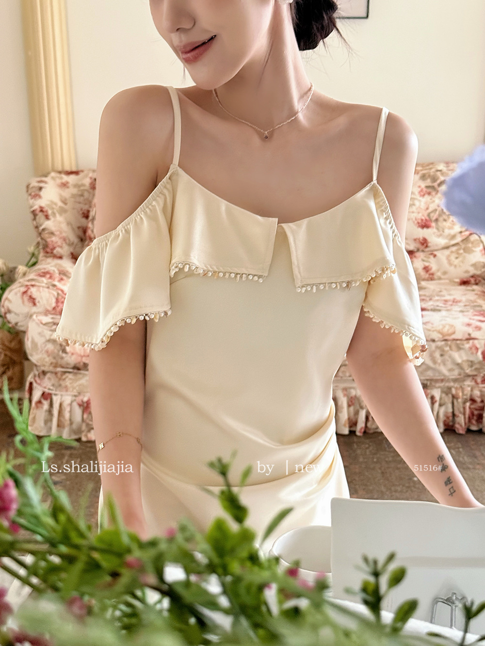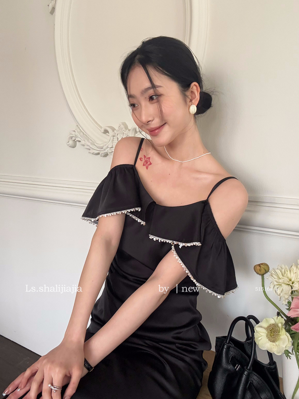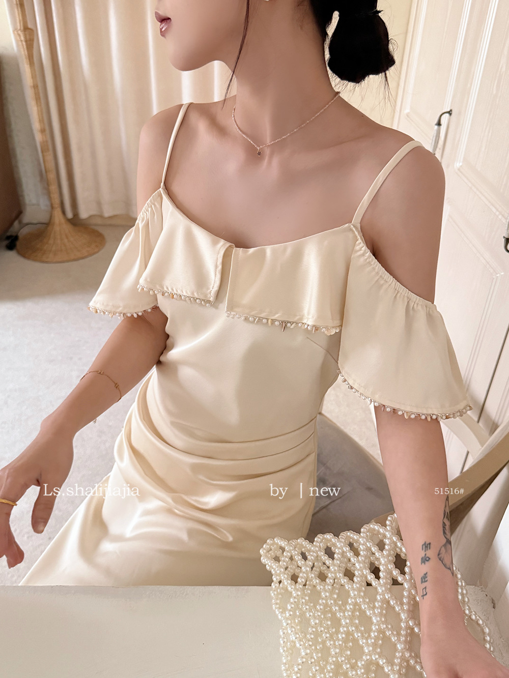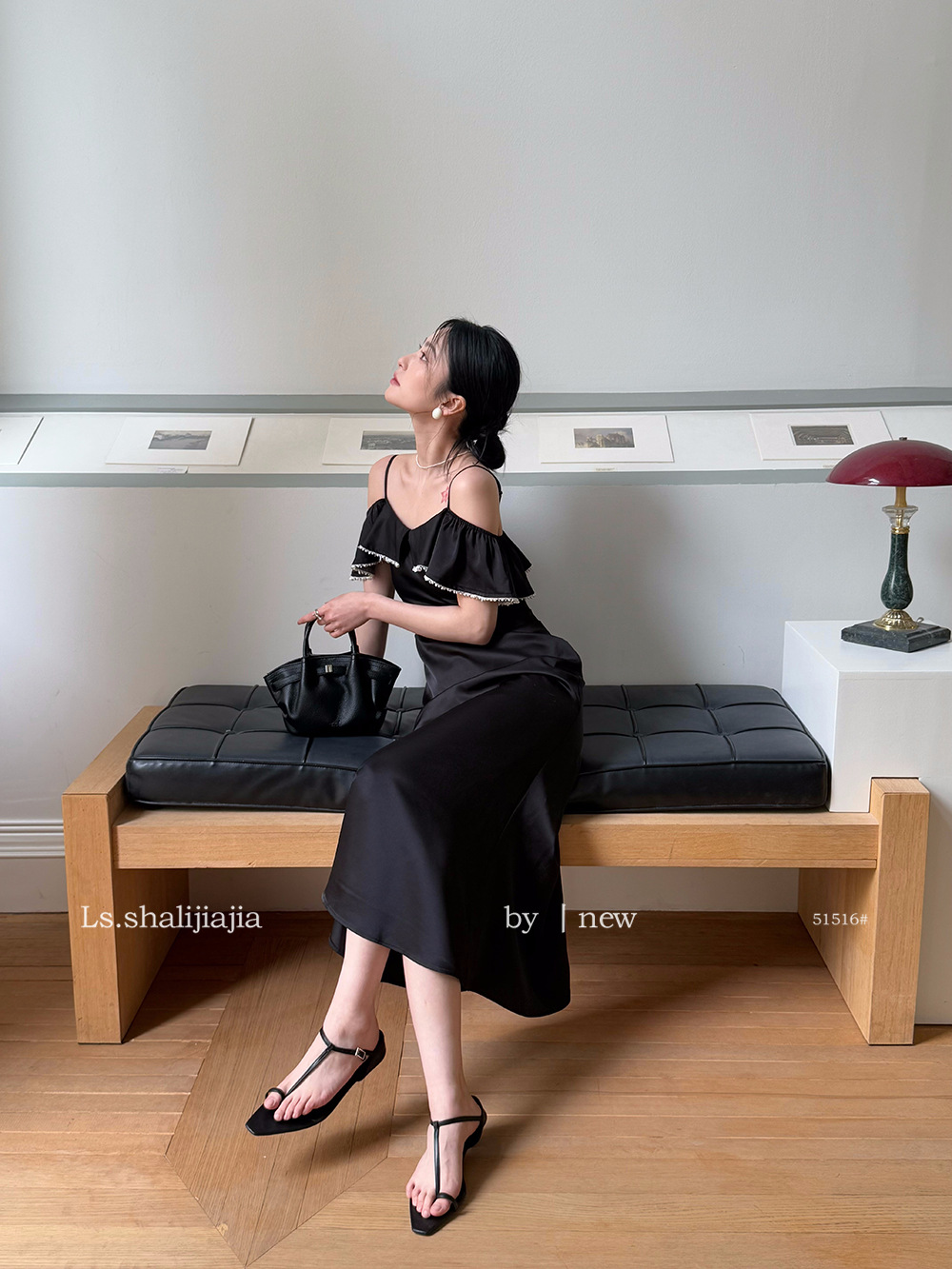 LS to 프랑스 기질, 2025 년 봄/여름 새로운 여성 원피스 51516 # 원피스 어깨 소매