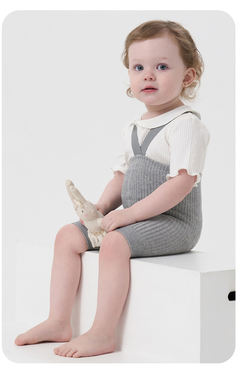 풀 그린 봄과 가을 아기 레깅스 양말 보름달 남녀 아기 코튼 높은 허리 배꼽 보호 스트랩 발목 길이 바지
