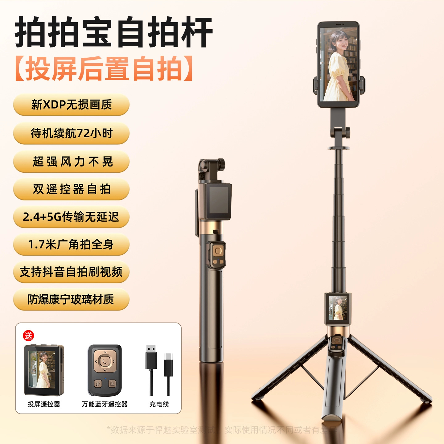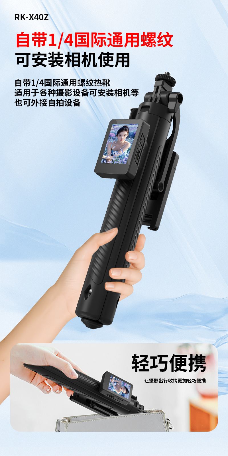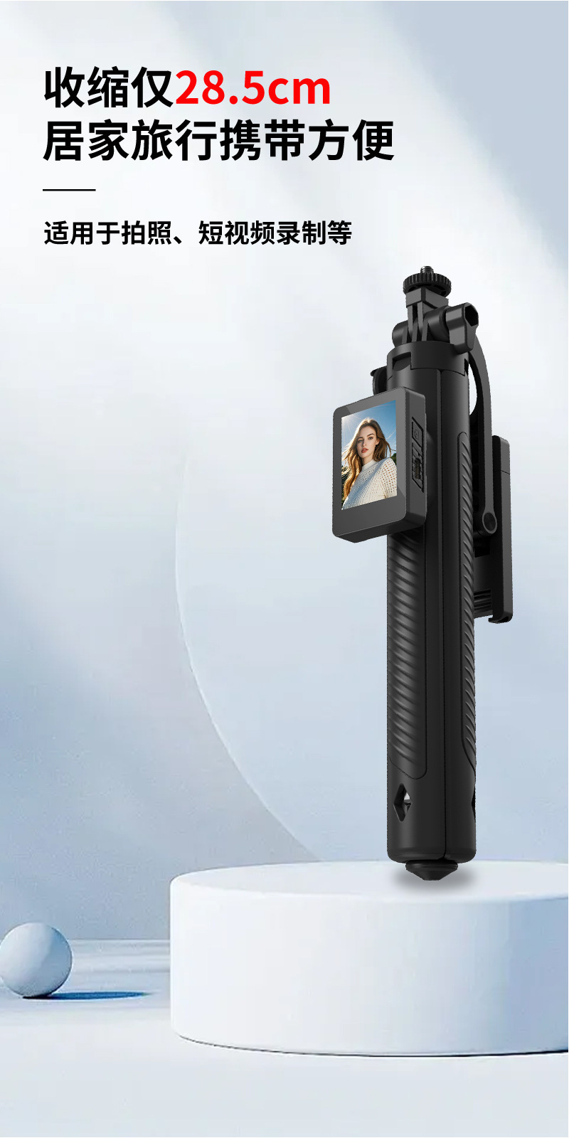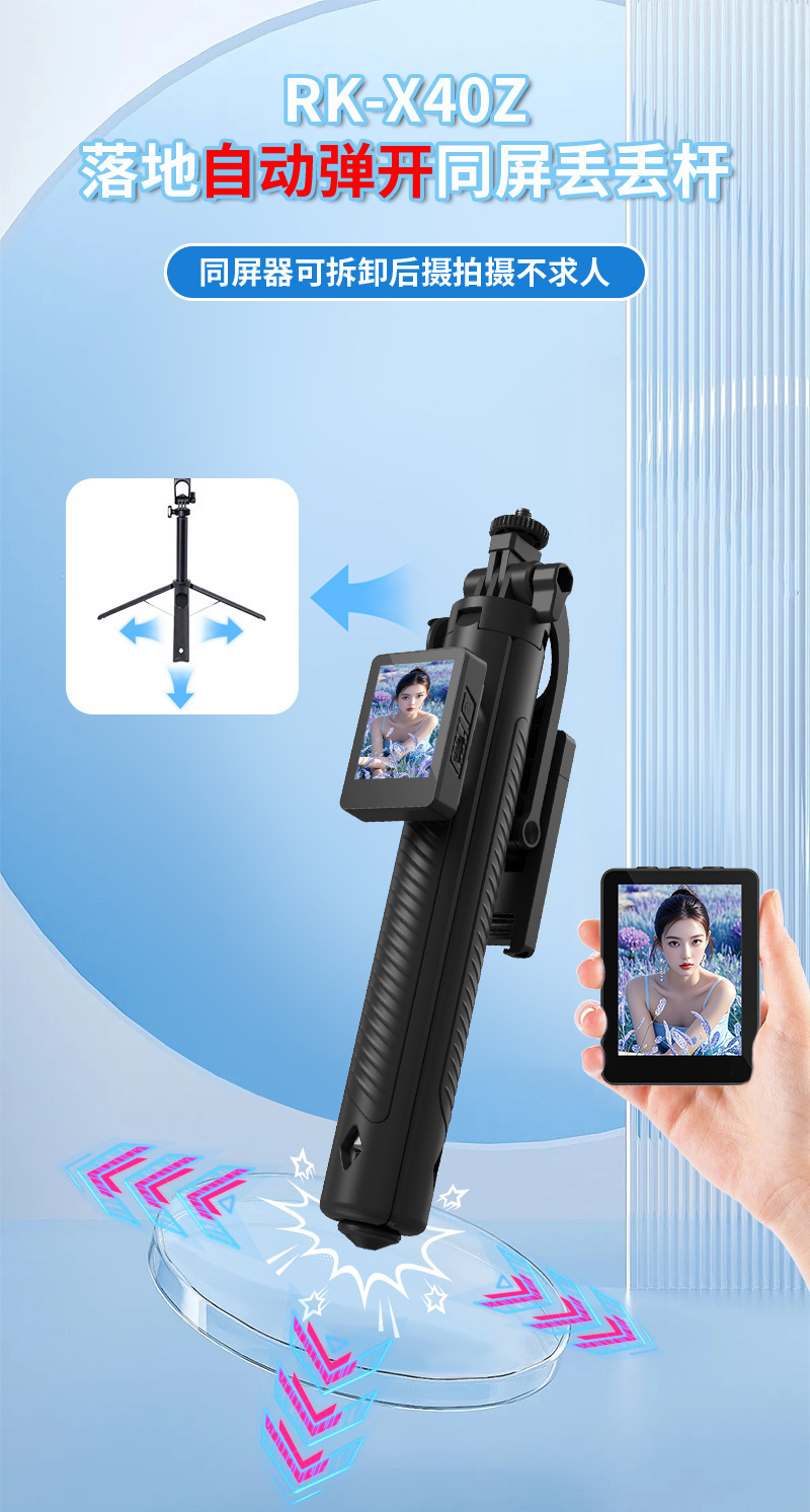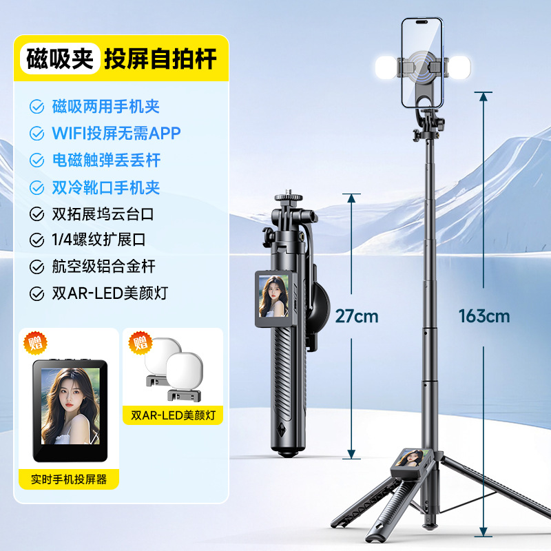 • DM11X 자기 스크린 프로젝션 셀카봉 [ 2inch HD 스크린 + 자기 범용 클립 + 디디 폴 + 단일 8cm 뷰티 램프 ]