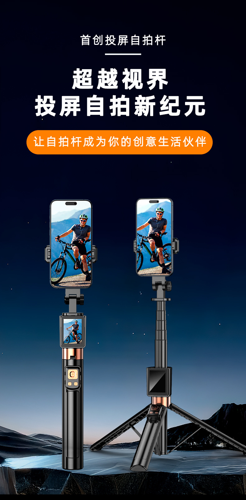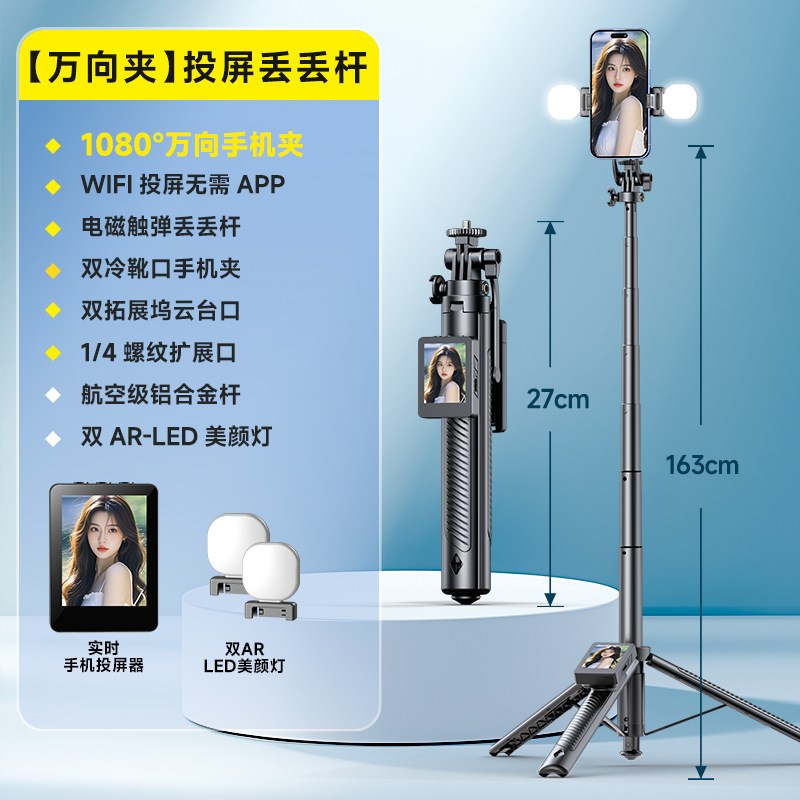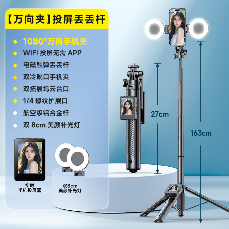 • D11D 스크린 프로젝션 셀카봉 [HD 스크린 + 만능 휴대폰 클립 + 디디 폴 + 듀얼 뷰티 램프]