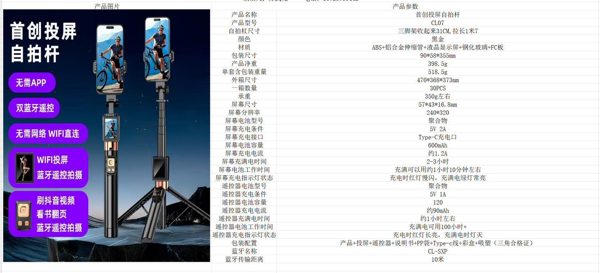 • CL07P 스크린 프로젝터 [로드 없는 스크린 2inch개 + APP 버전]