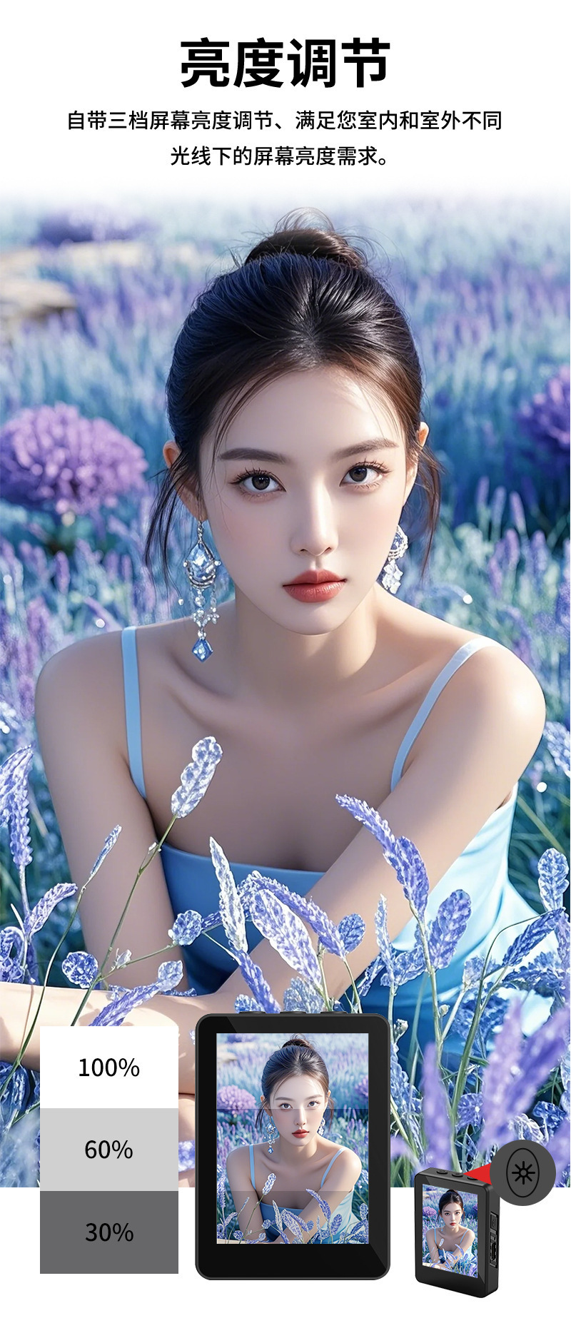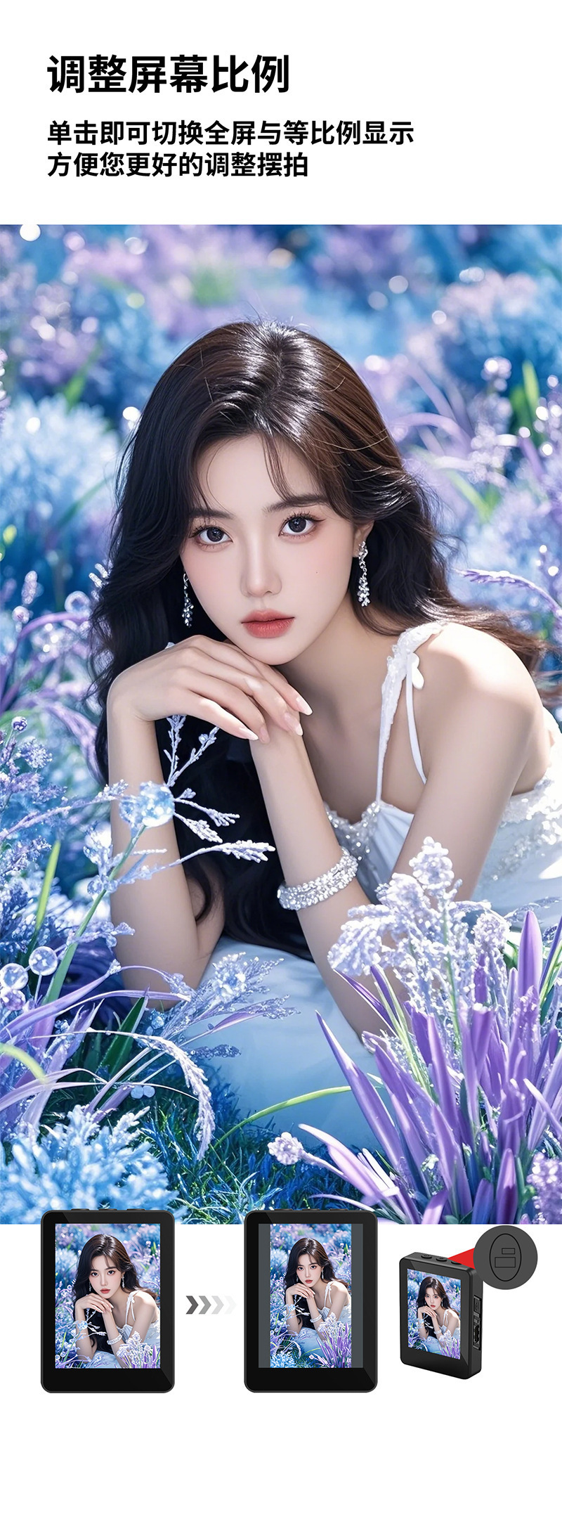 • DM11D 자기 투사 스크린 셀카봉 [ 2inch HD 스크린 + 자기 범용 클립 + 디디 폴 + 듀얼 뷰티 램프 ]