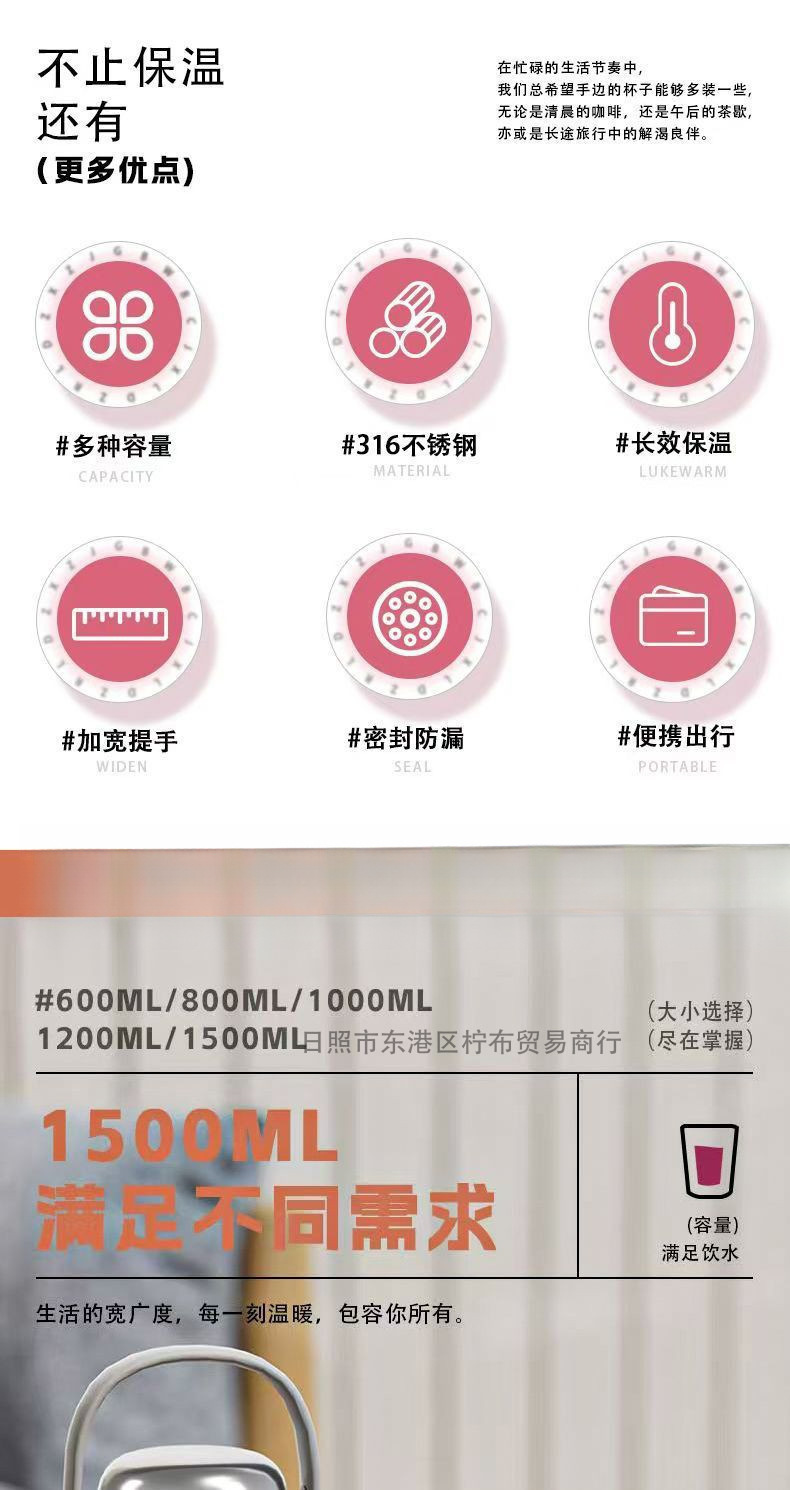 316 스테인레스 스틸 보온병 컵 대용량 물 컵 여성 학생 큰 배 컵 높은 아름다움 휴대용 주전자 야외 컵스토어 가기
