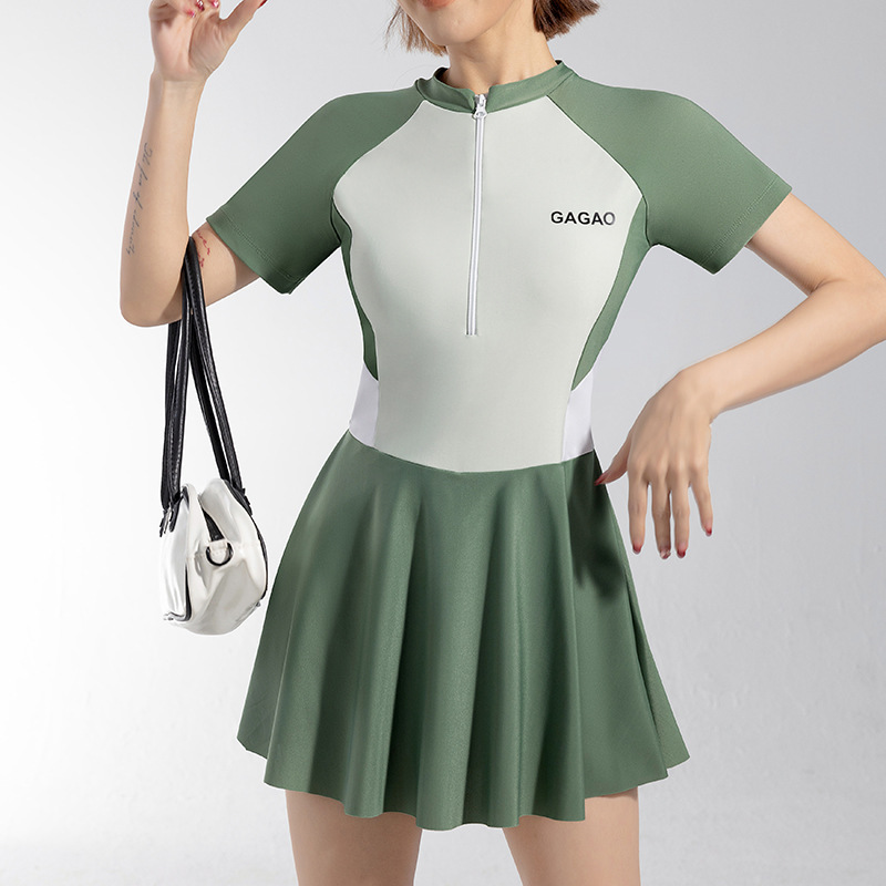 스포츠 수영복 여성의 2025 새로운 원피스 스커트 보수적 인 고기 커버 슬림 학생 소녀 온천 수영복 도매