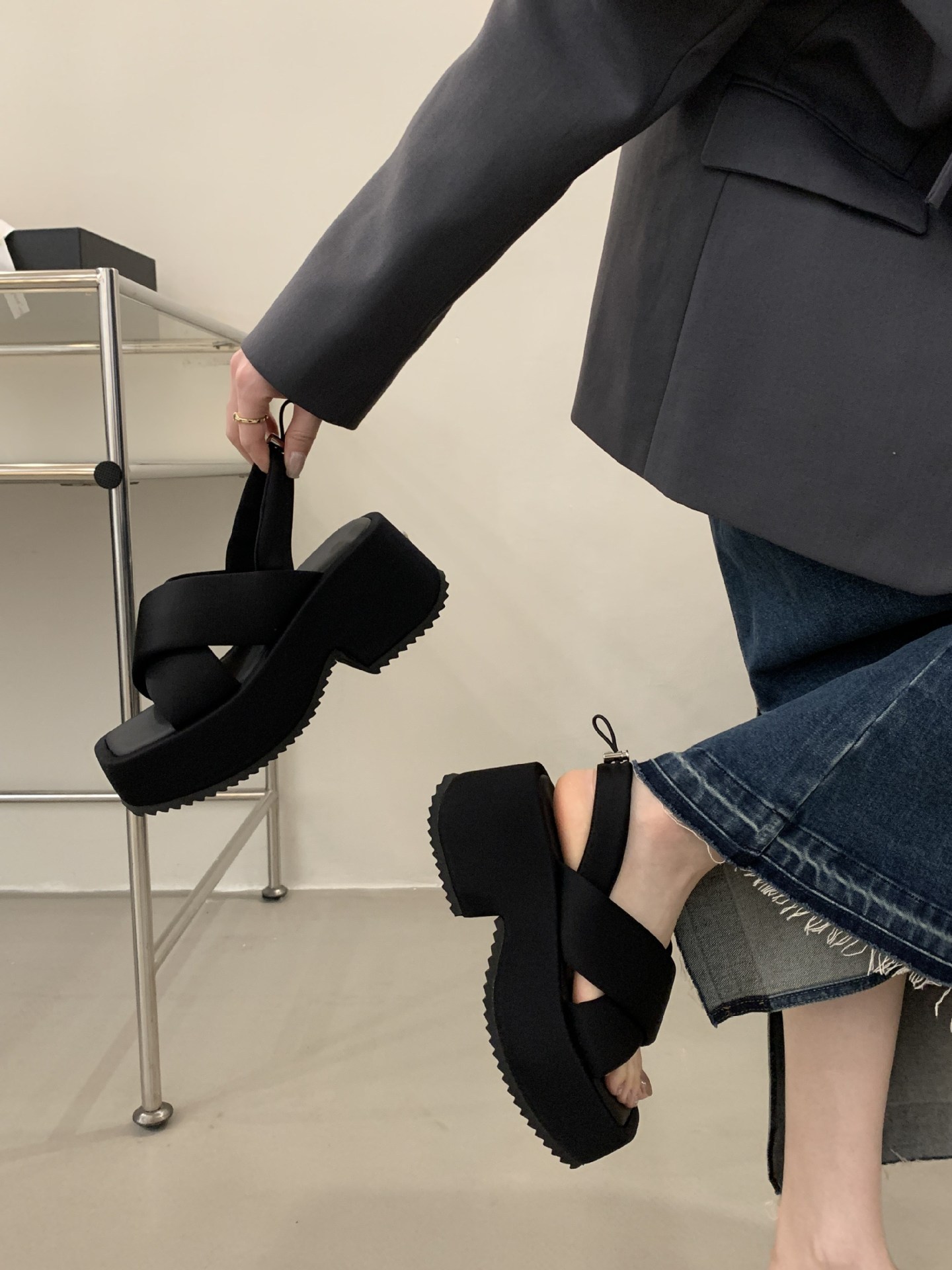 유럽 역 샌들 여성 캐주얼 패션 2025 여름 새로운 웨지 힐 경량 두꺼운 바닥 여성 신발 유럽