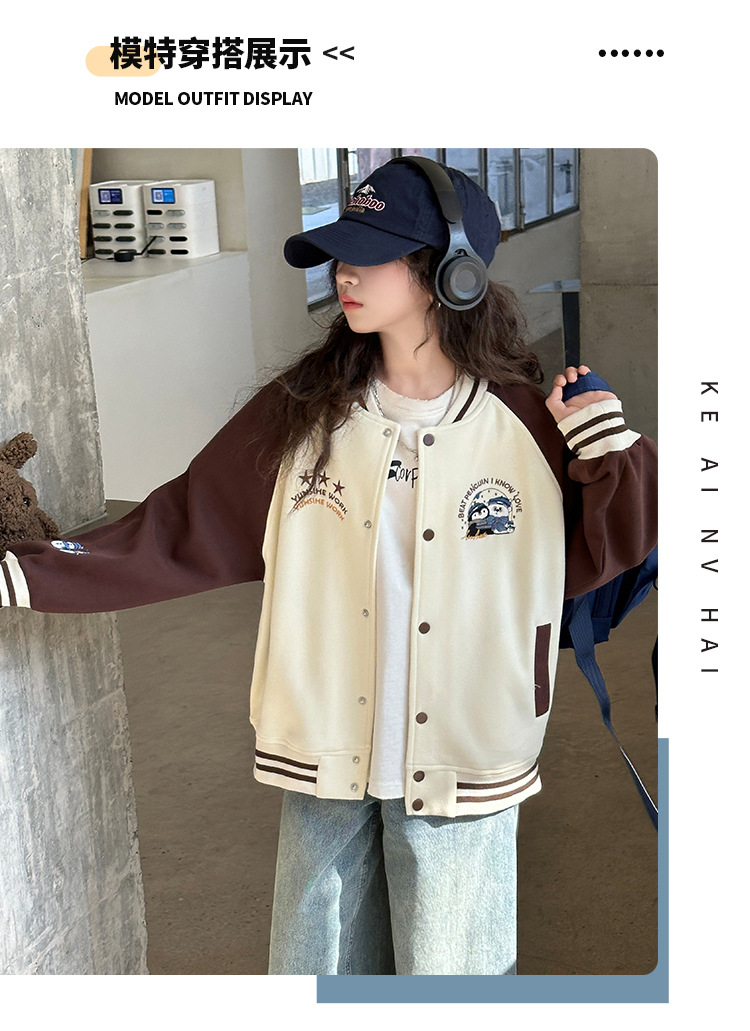 소녀 봄 코트 2025 새로운 서양 스타일 유행 어린이 자수 컬러 블록 야구 세트 봄 탑스토어 가기