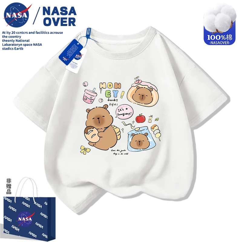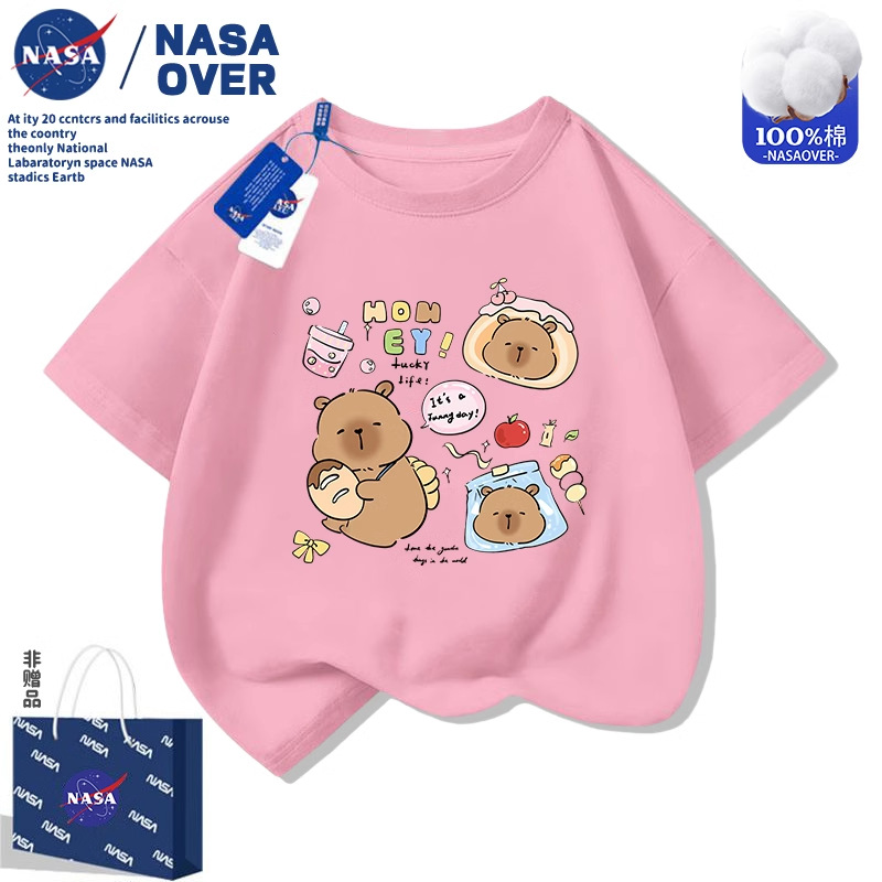 NASA 어린이 Kabi Bala 귀여운 인쇄 반팔 티셔츠 2025 여름 소년 소녀를위한 새로운 면 탑스토어 가기