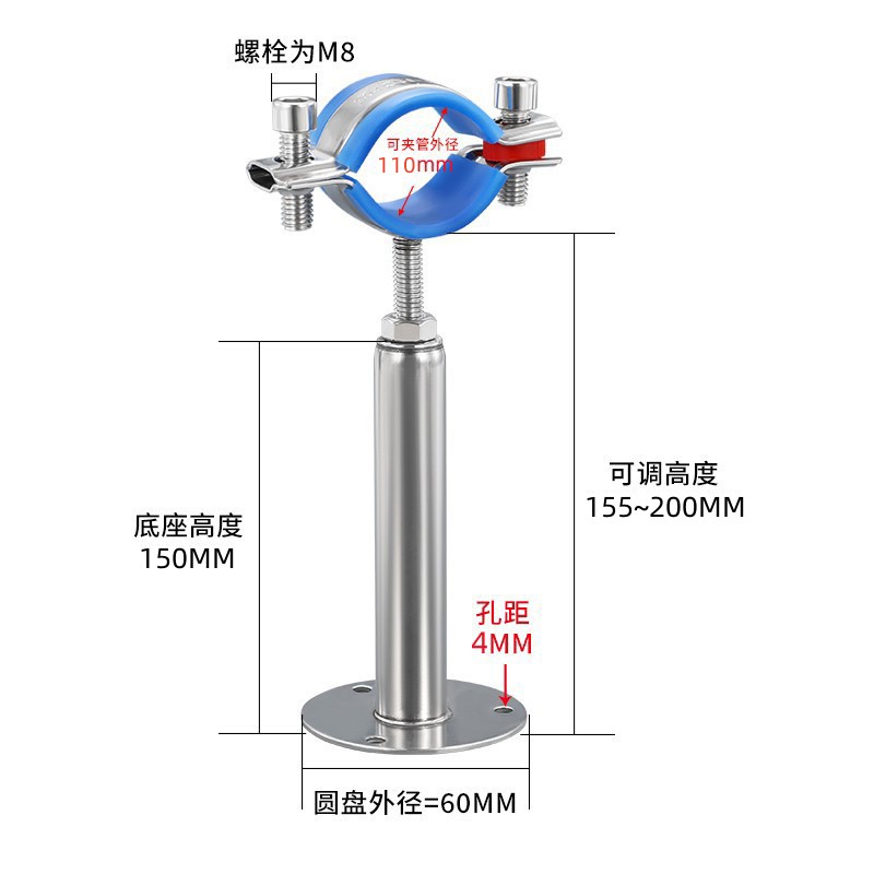 스테인레스 스틸 파이프 클램프 고정 클램프 파이프 브래킷 파이프 클램프 가스 파이프 고정 브래킷 물 파이프 브래킷 홀드 후프