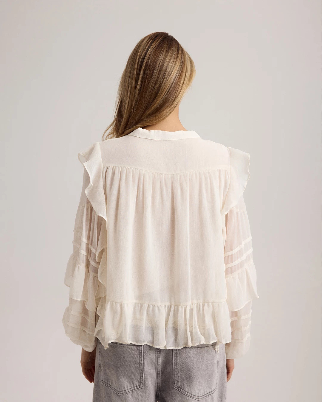 봄과 여름 2025 새로운 프랑스 스타일 레트로 러플 레이스 업 쉬폰 셔츠 여성의 통기성 우아한 통근 요정 셔츠스토어 가기