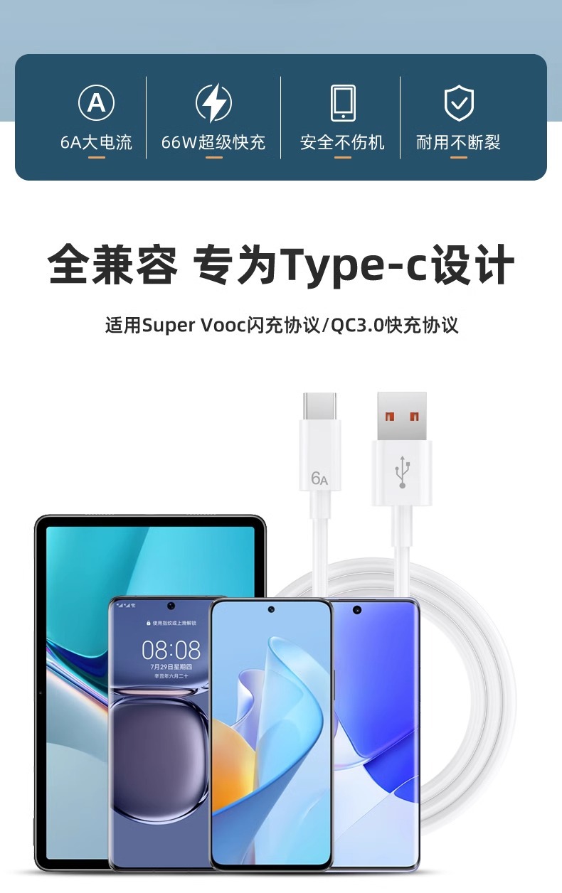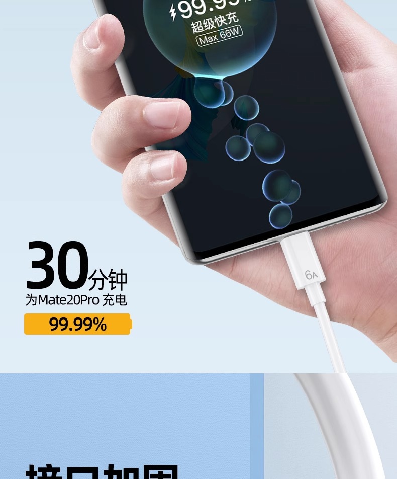 슈퍼 빠른 충전 6A 데이터 케이블 화웨이 타입-c 안드로이드 휴대 전화 100w 충전 케이블 제조 업체 도매 선물스토어 가기