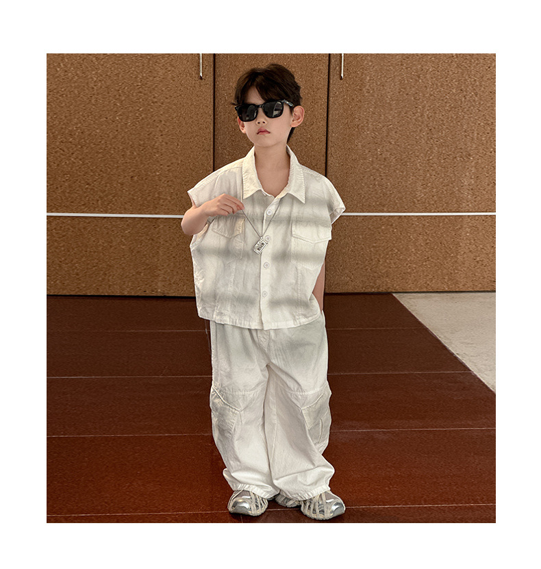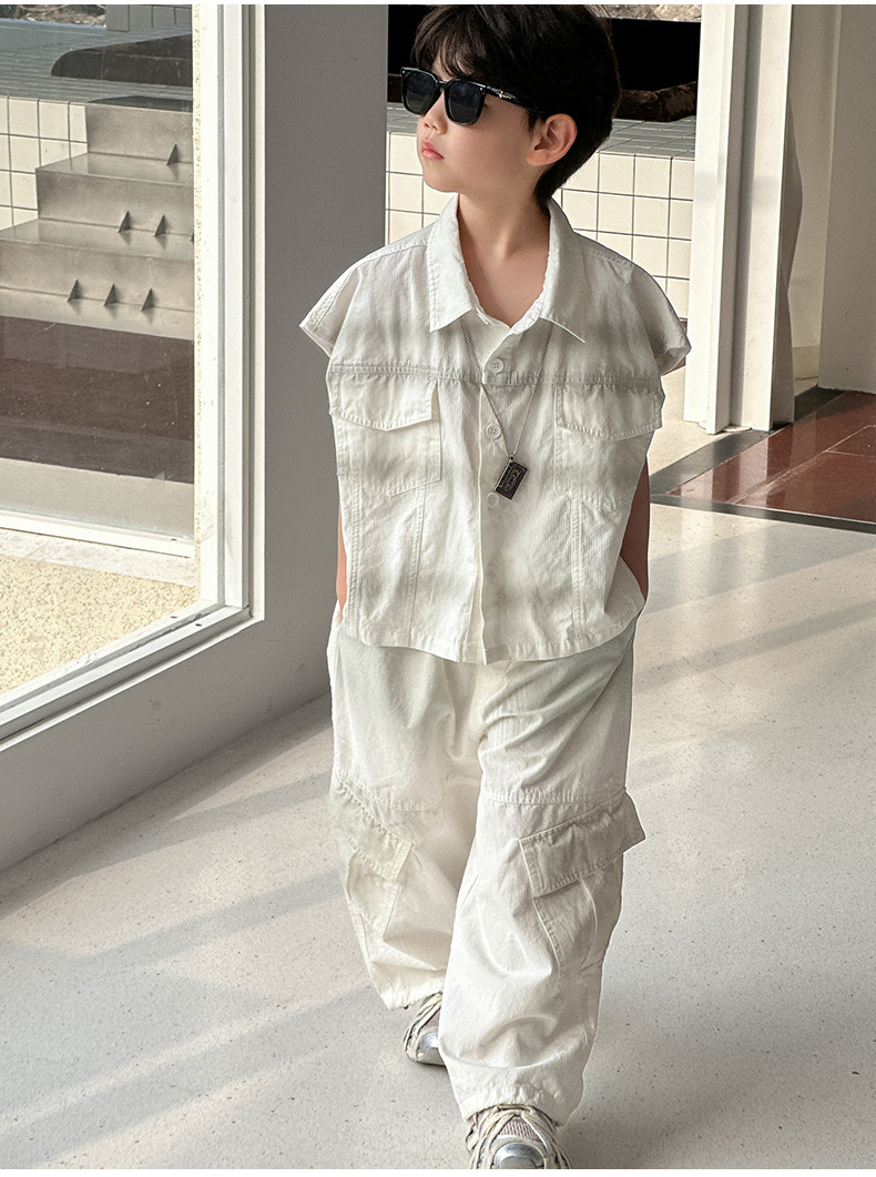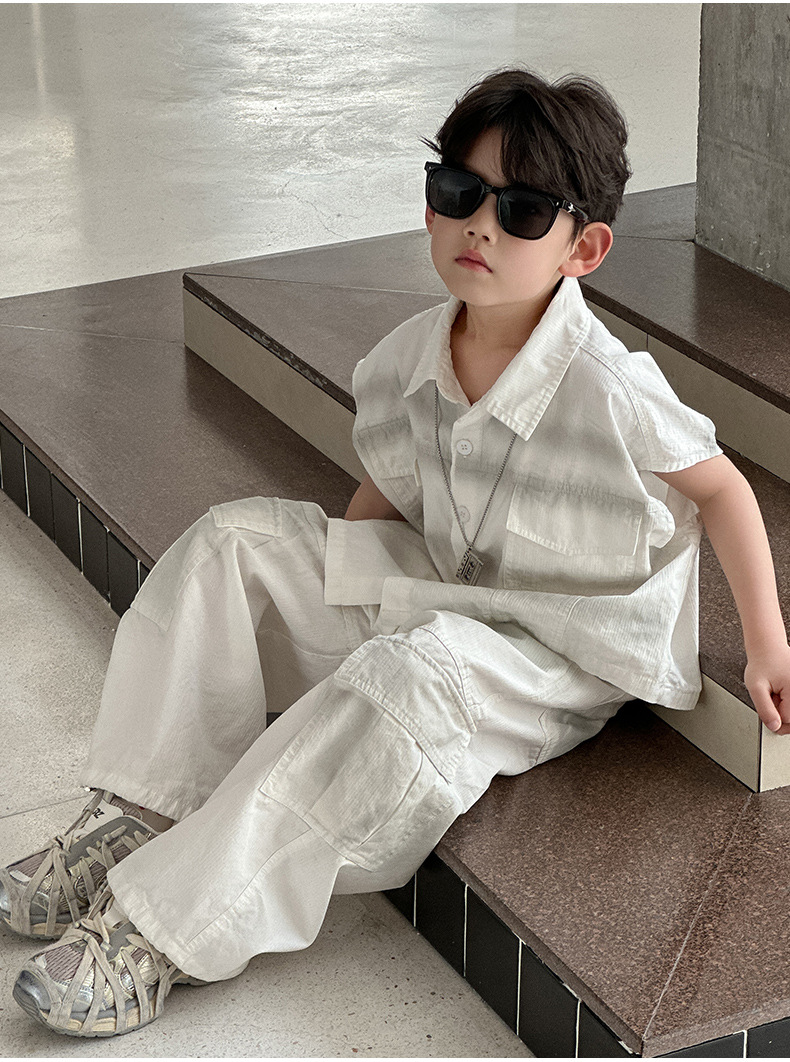 아동 의류 소년 얇은 양복 2025 여름 새로운 스타일 어린이 작은 소년 여름 셔츠 바지 캐주얼 투피스 세트 유행