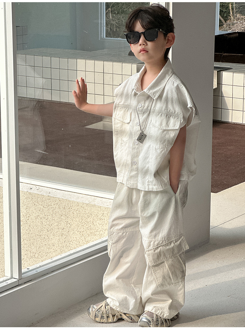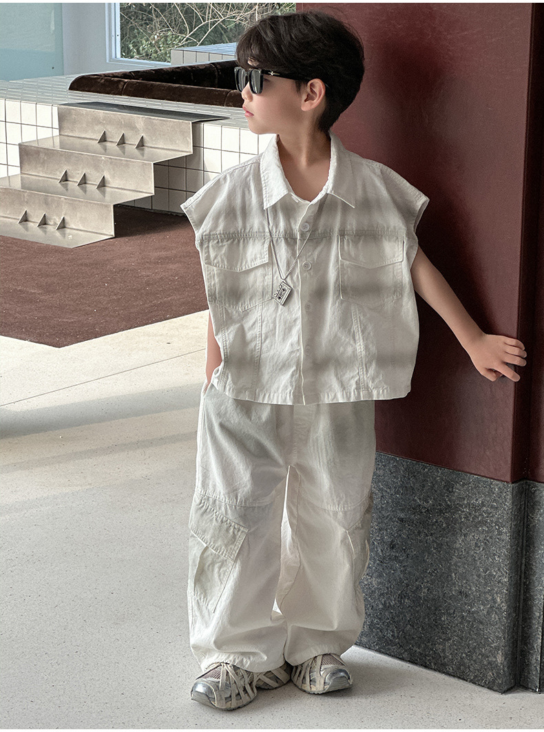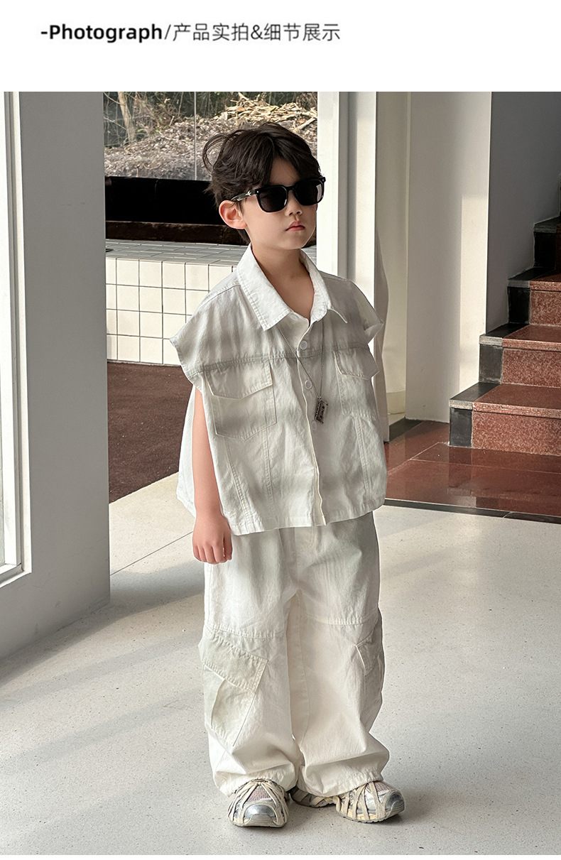 아동 의류 소년 얇은 양복 2025 여름 새로운 스타일 어린이 작은 소년 여름 셔츠 바지 캐주얼 투피스 세트 유행스토어 가기