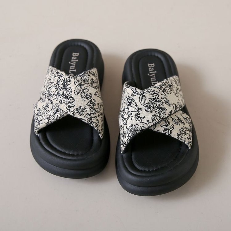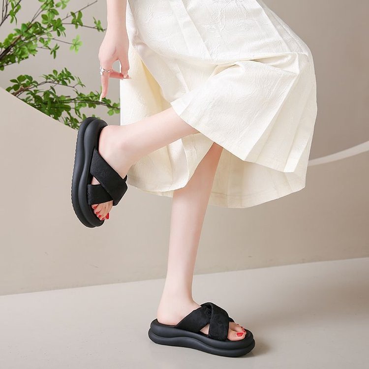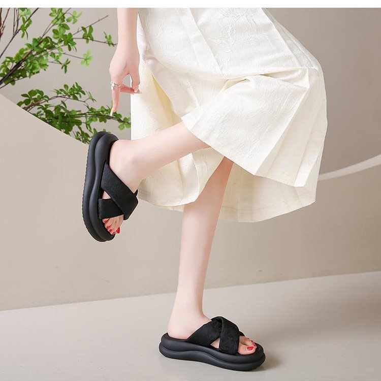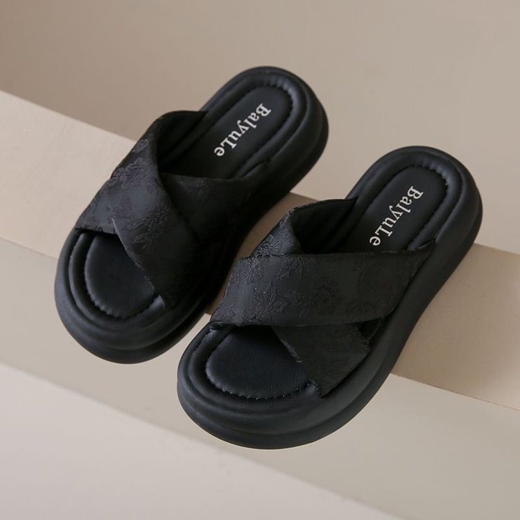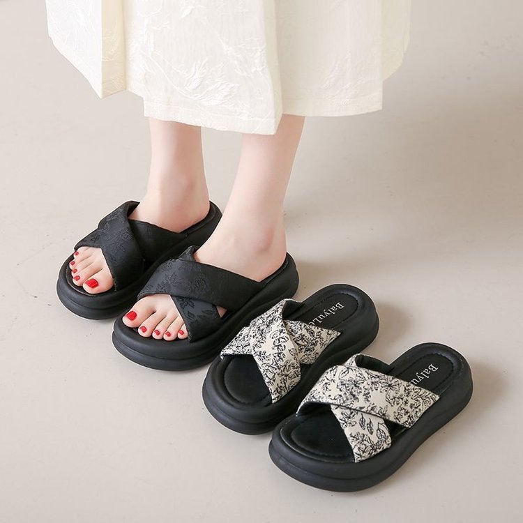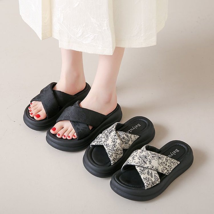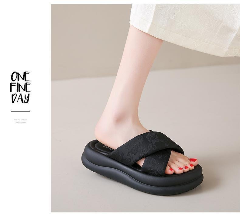 두꺼운 바닥 새로운 중국 스타일 국가 스타일 슬리퍼 여성 여름 2025 새로운 패션 크로스 비치 신발 미끄럼 방지 부드러운 바닥 샌들