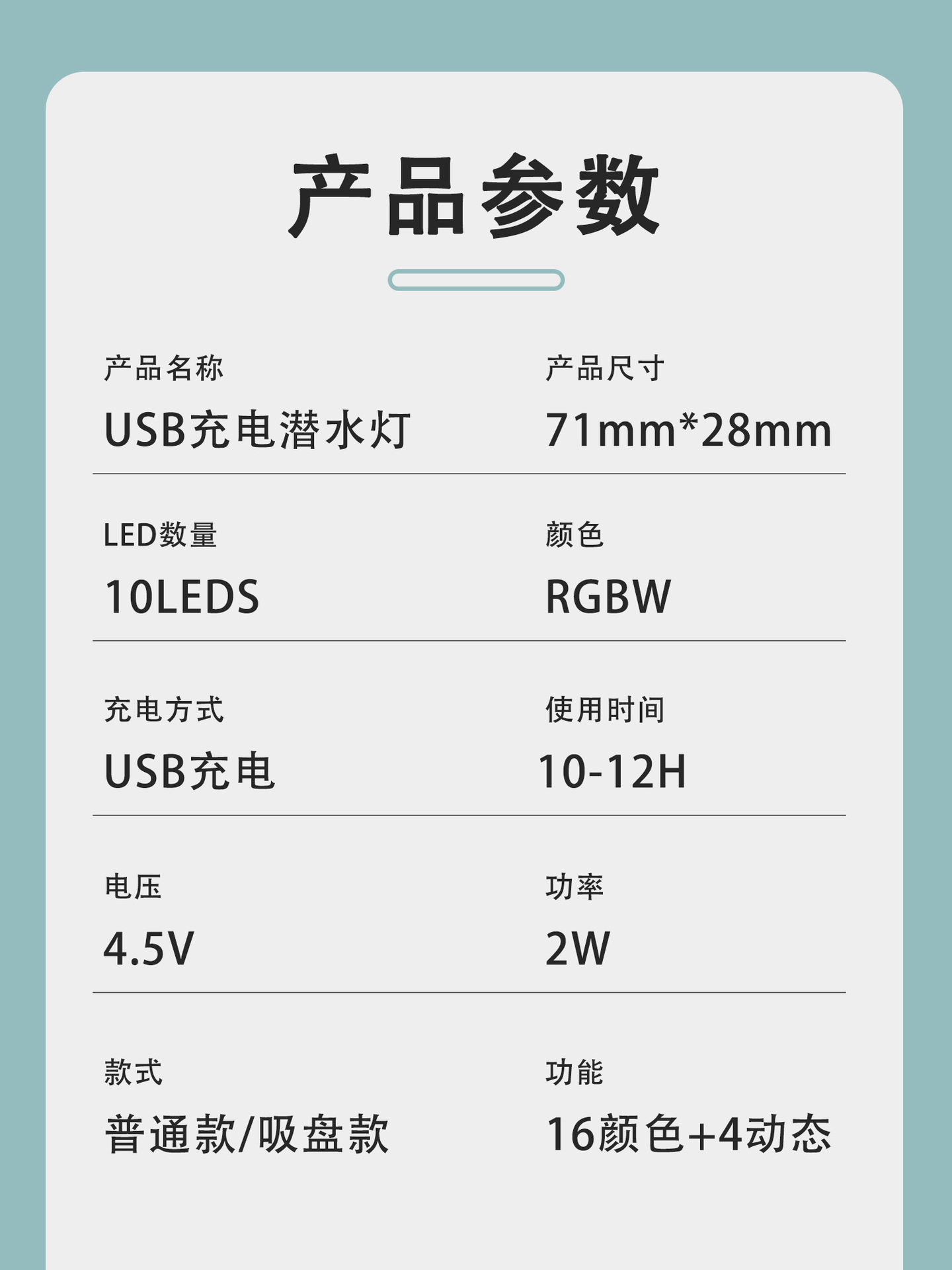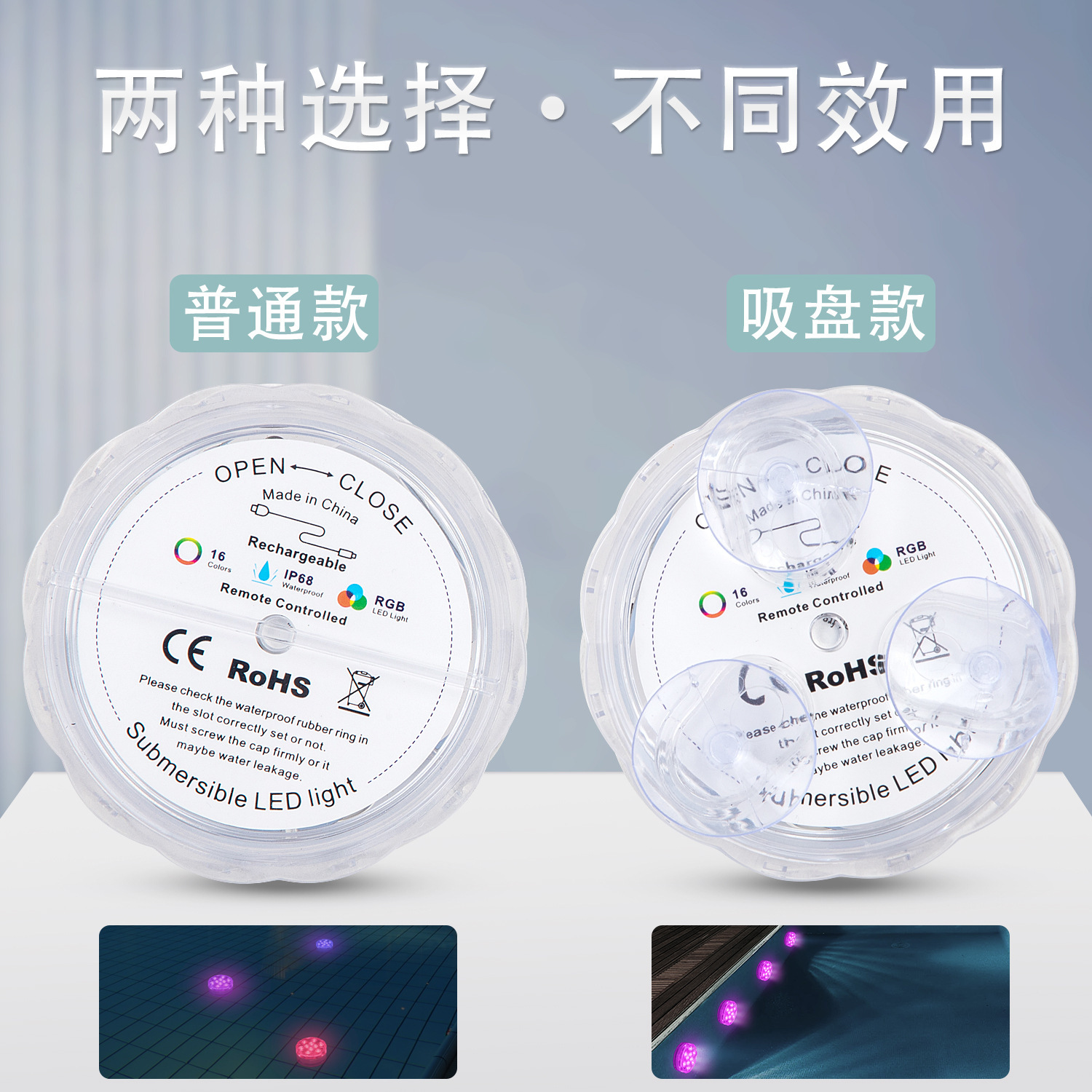 • 충전식 플로팅 흡입 컵 모델 조명 2개 제어 1개 종이 상자에 포장됨