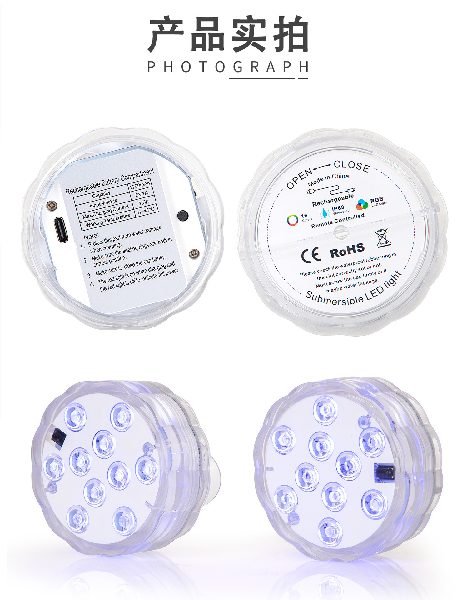 • 충전식 플로팅 흡입 컵 모델 4개 조명 1개 제어 1개 와이어 종이 상자