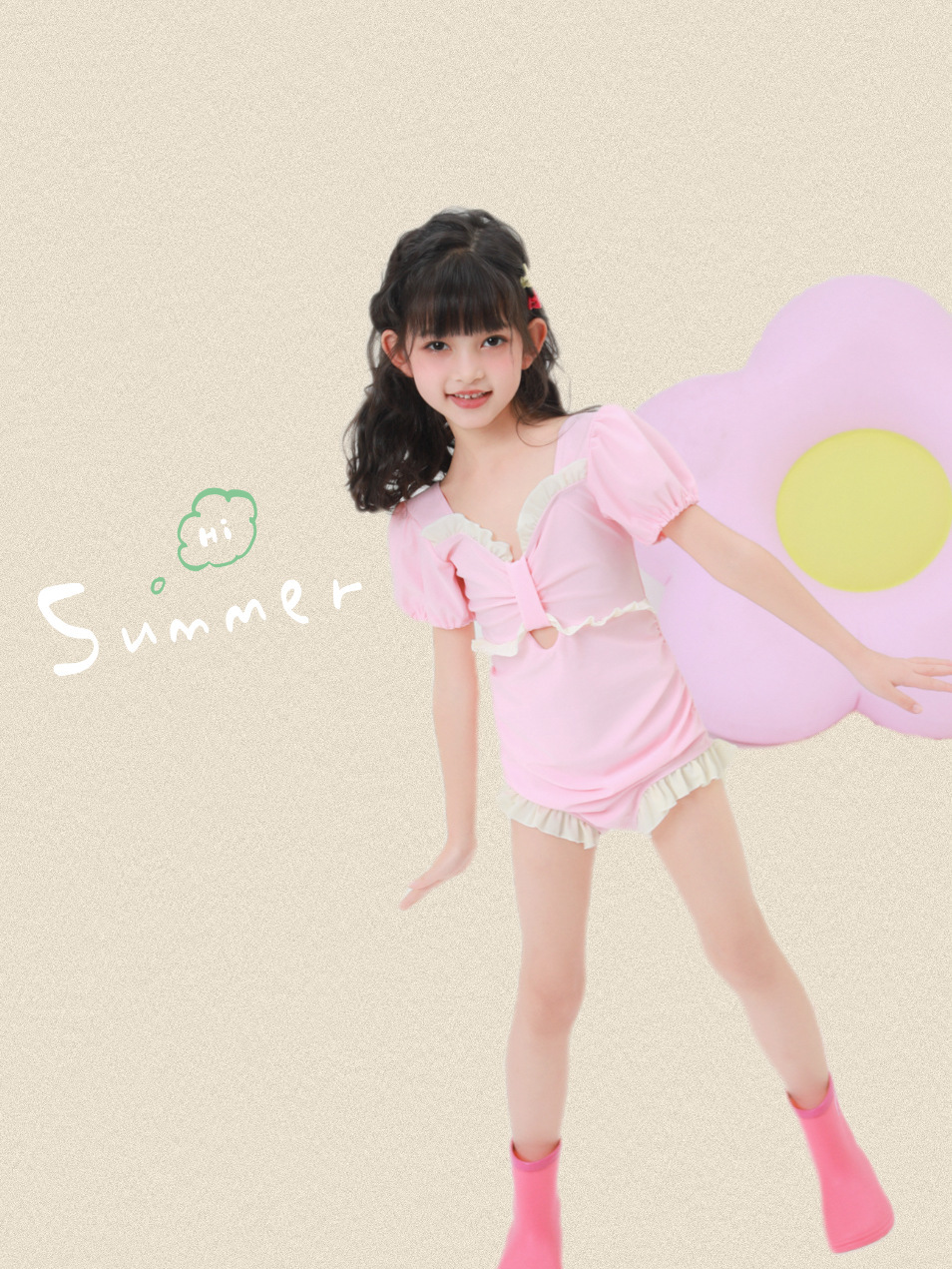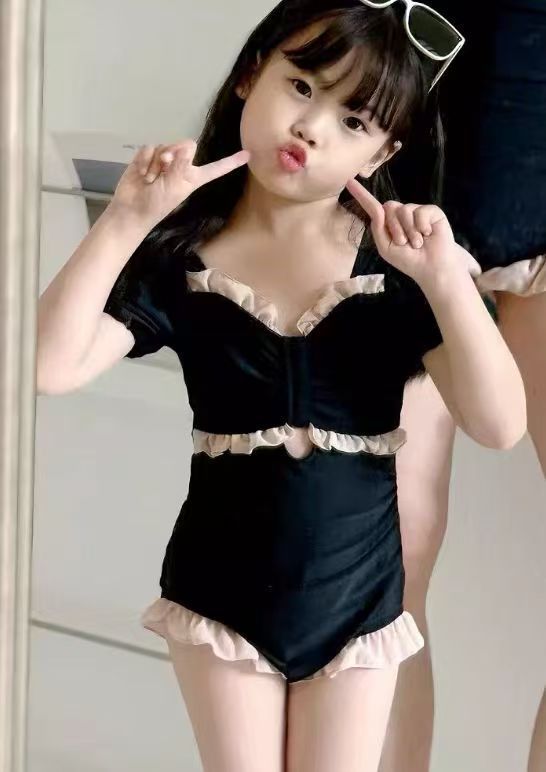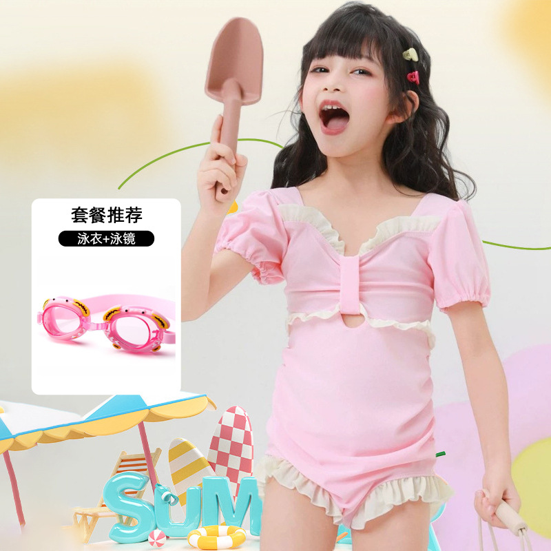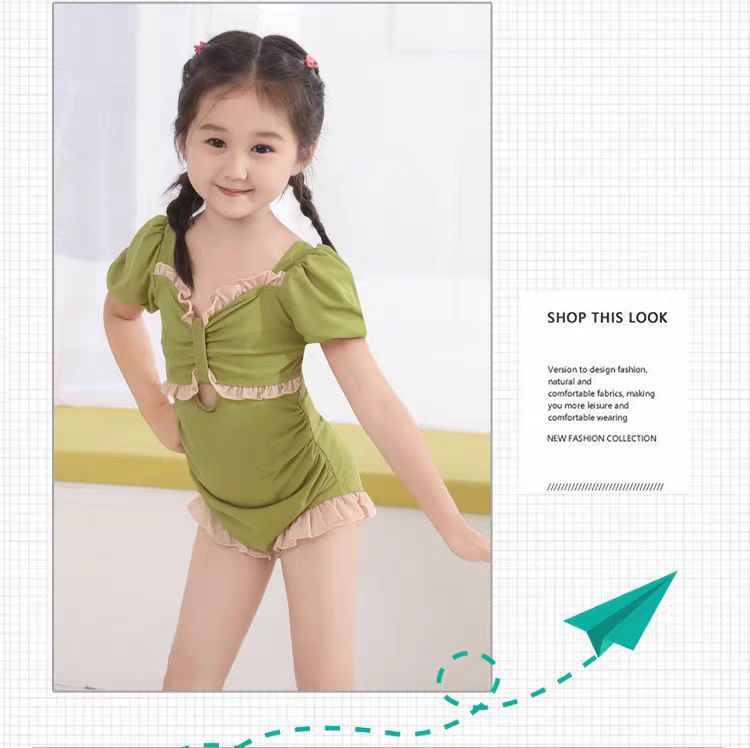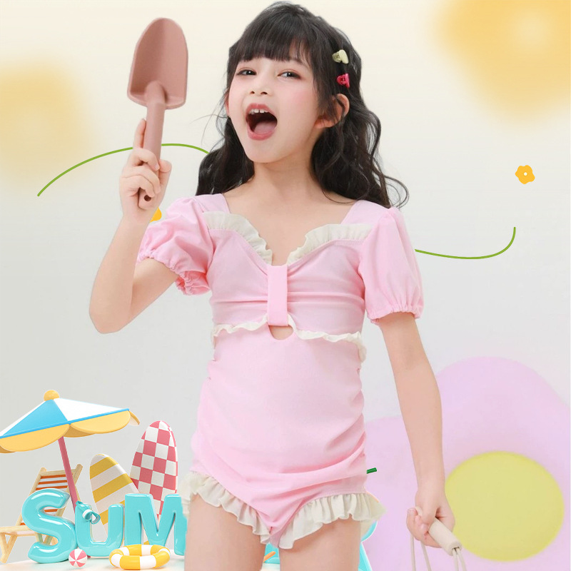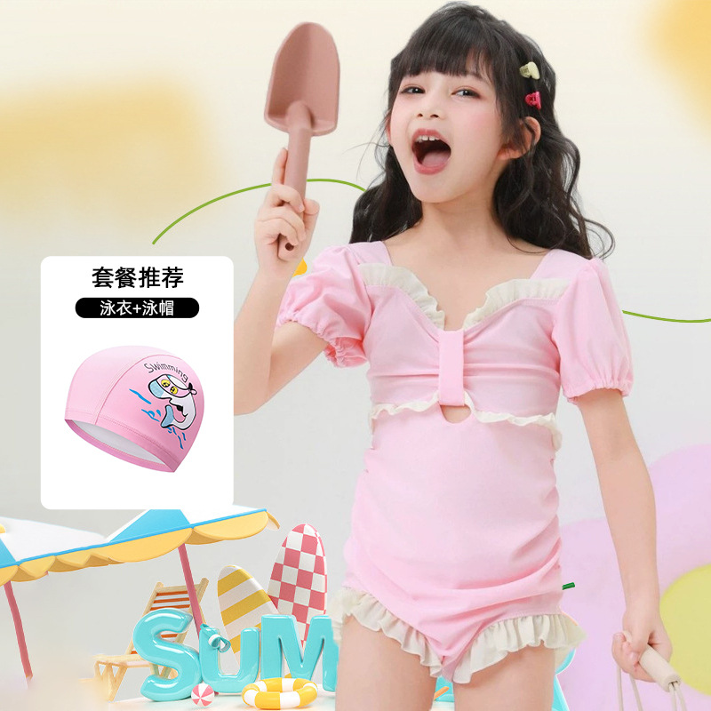 단색 원피스 트라이앵글 레이스 원피스 속건 미백 수영복 반팔 어린이 곰팡이 해변 귀여운 수영복스토어 가기