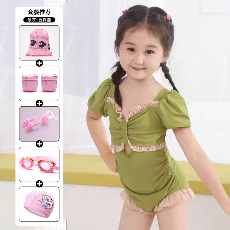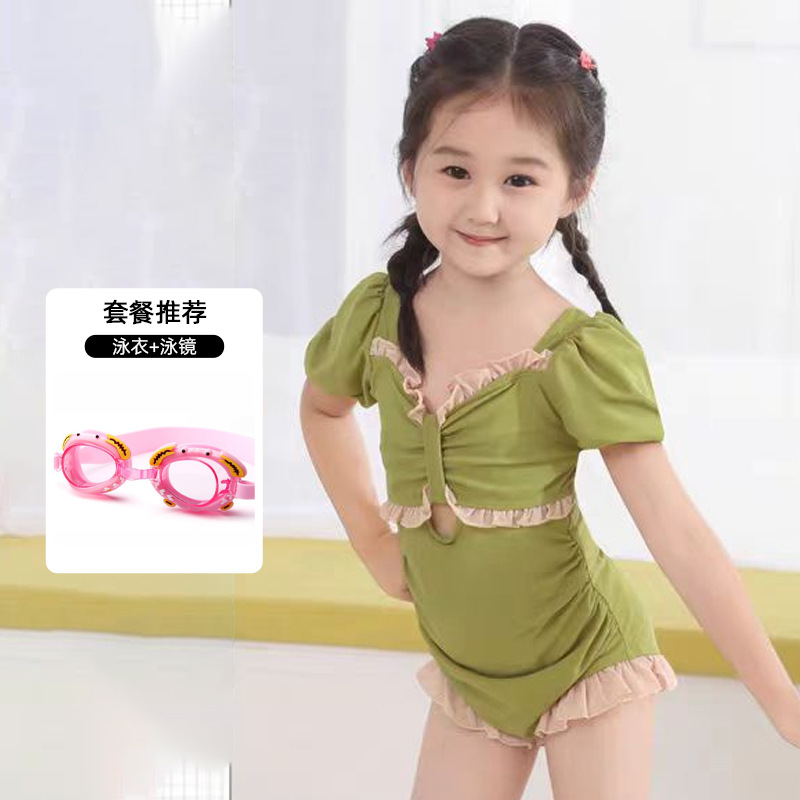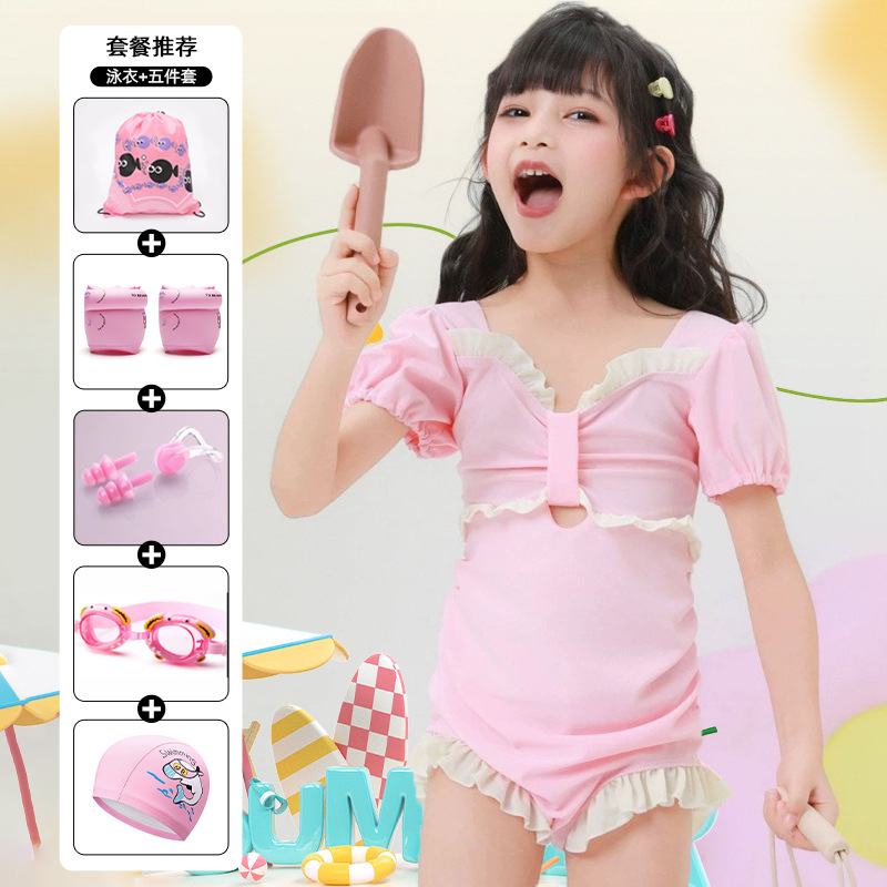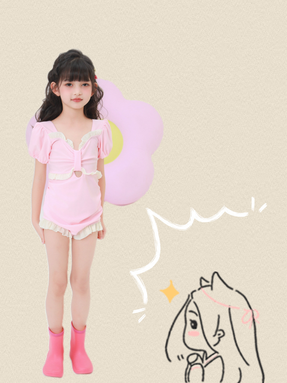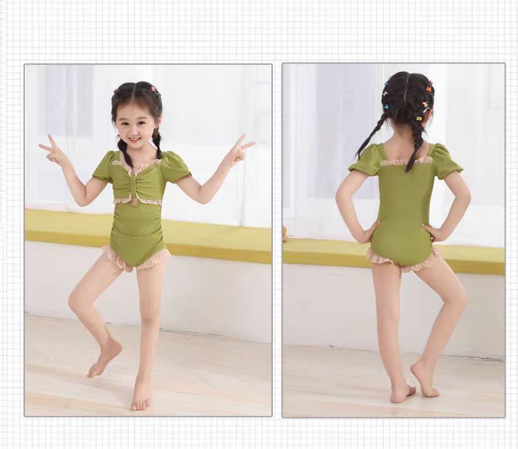 단색 원피스 트라이앵글 레이스 원피스 속건 미백 수영복 반팔 어린이 곰팡이 해변 귀여운 수영복스토어 가기