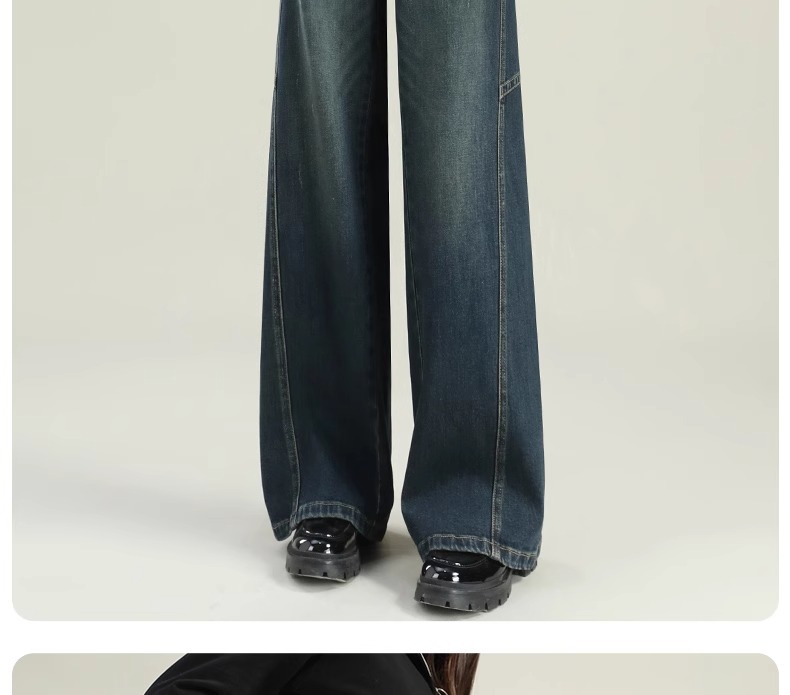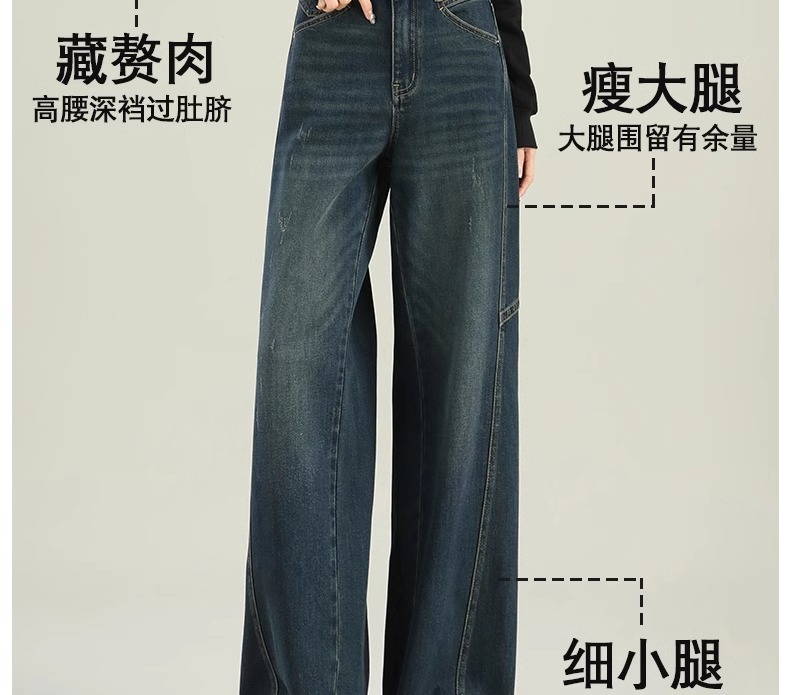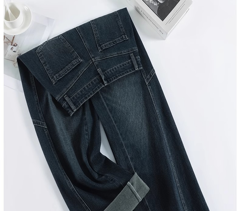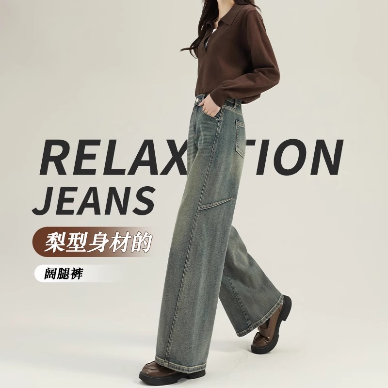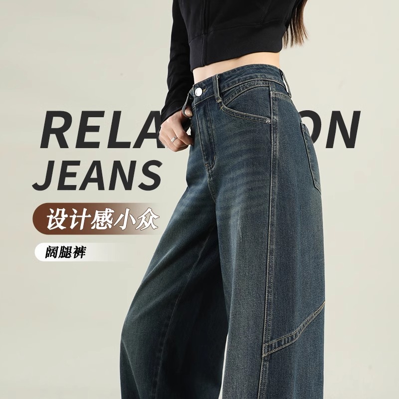 넓은 다리 청바지 여성의 봄과 가을 2025 새로운 패션 트렌드 봄 작은 느슨한 높은 허리 스트레이트 바지스토어 가기
