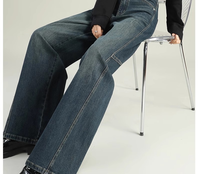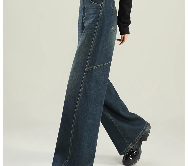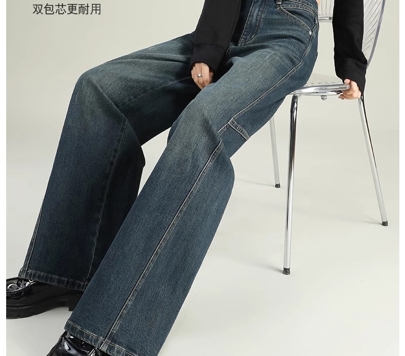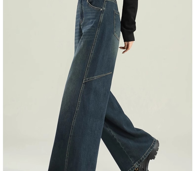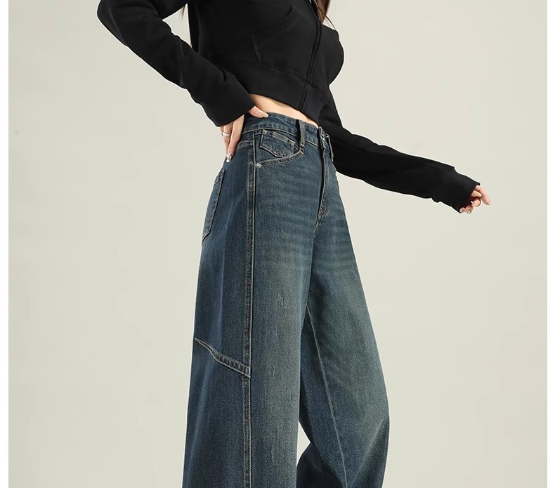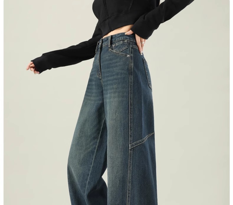 넓은 다리 청바지 여성의 봄과 가을 2025 새로운 패션 트렌드 봄 작은 느슨한 높은 허리 스트레이트 바지스토어 가기