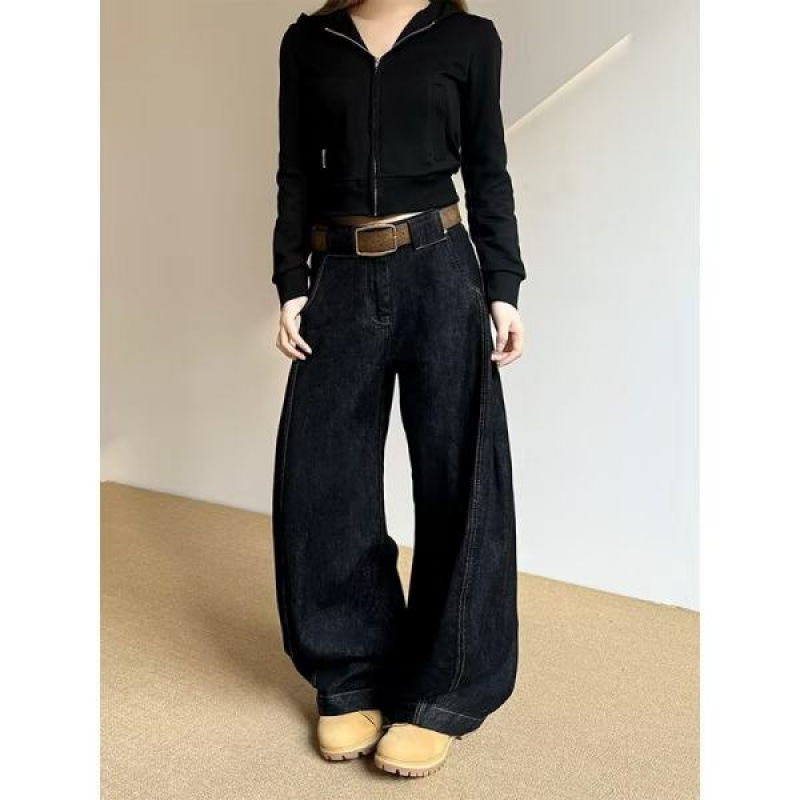2025 년 이른 가을 새로운 Machete 청바지 좁은 넓은 다리 바지 여성용 느슨한 플러스 사이즈 약간 뚱뚱한 다리 두꺼운 슬림 스트레이트 다리 바지스토어 가기