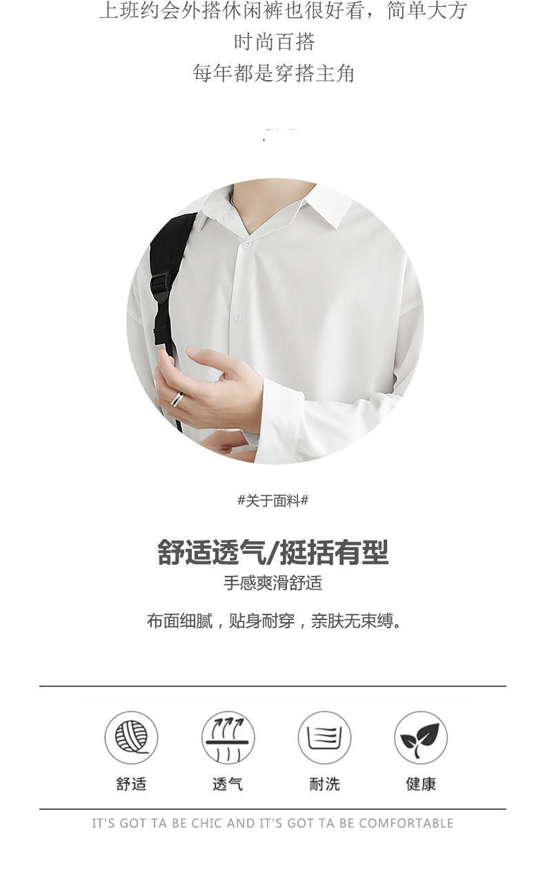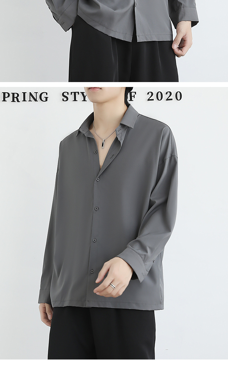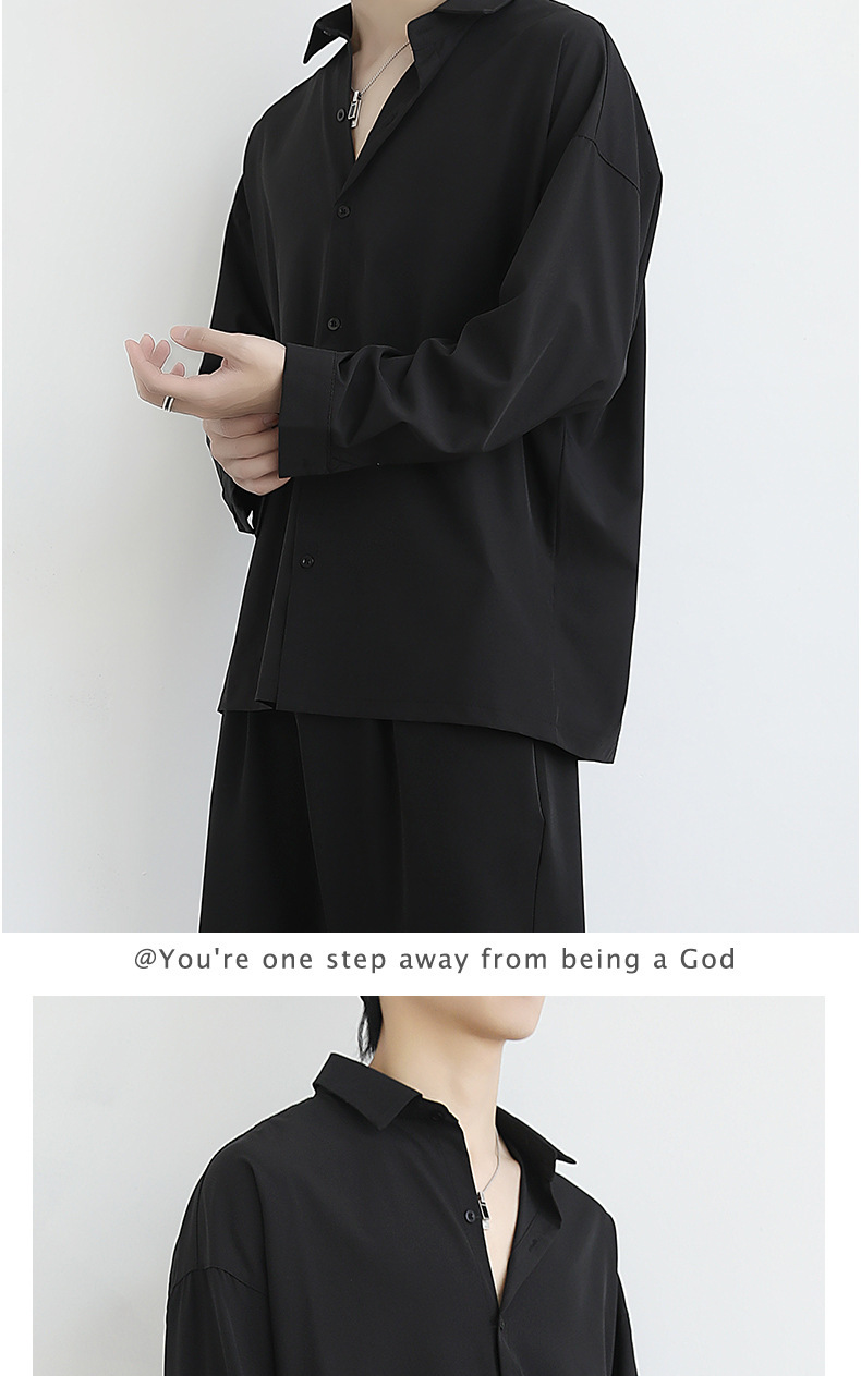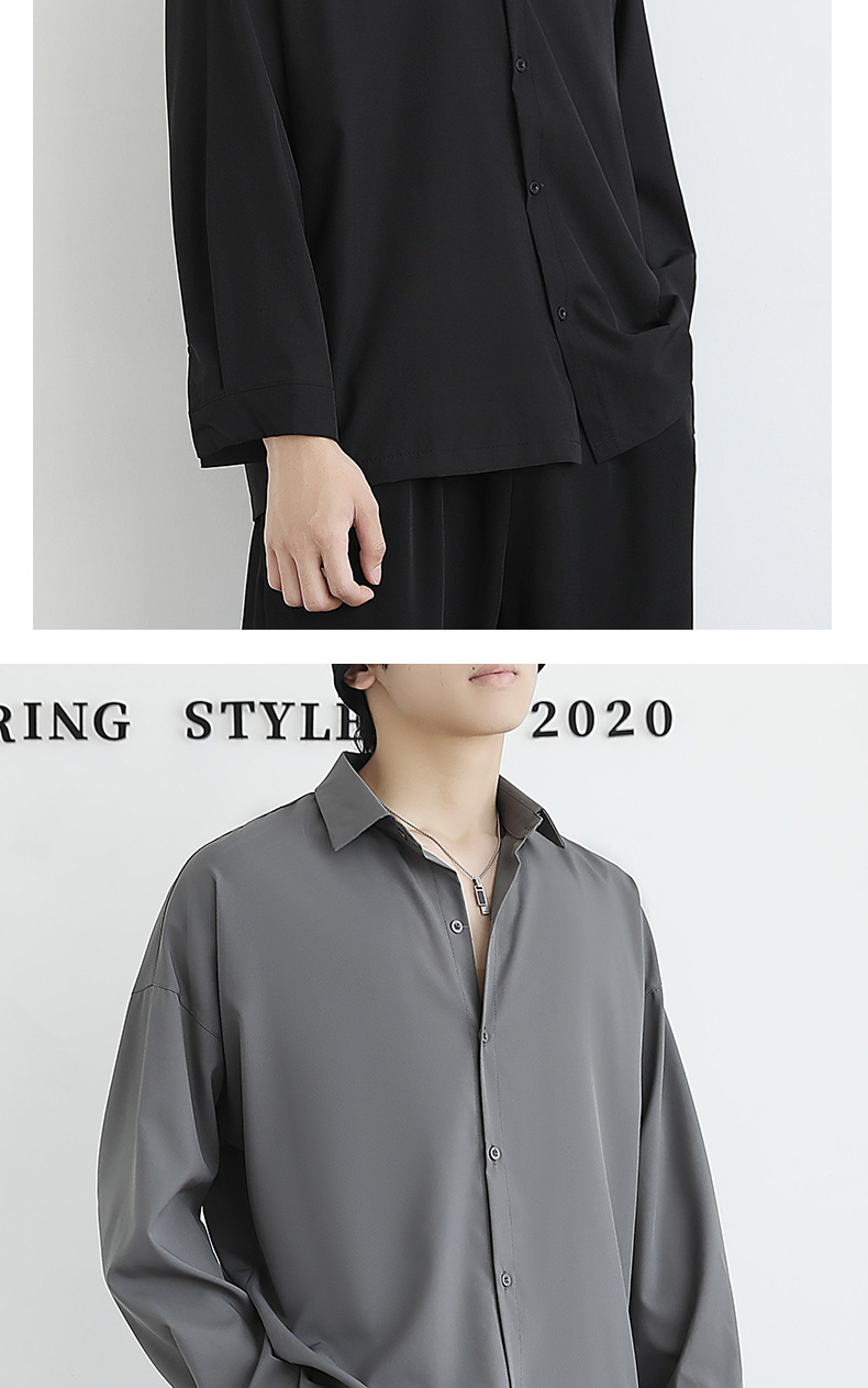 느슨한 얼음 실크 포장 된 검은 셔츠 남자 긴팔 가을 유행 Dk 남자 코트 캐주얼 남성 흰색 셔츠스토어 가기
