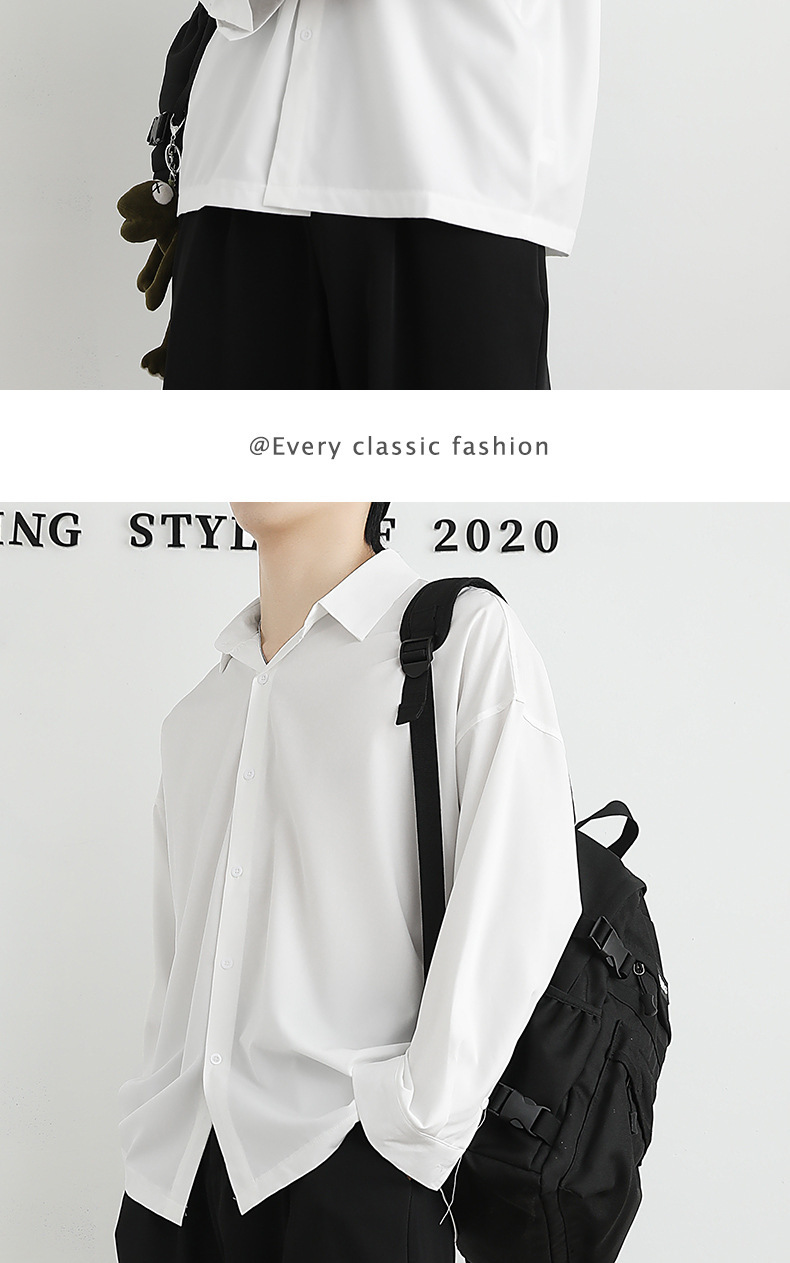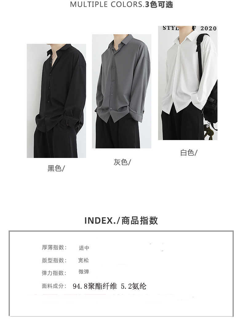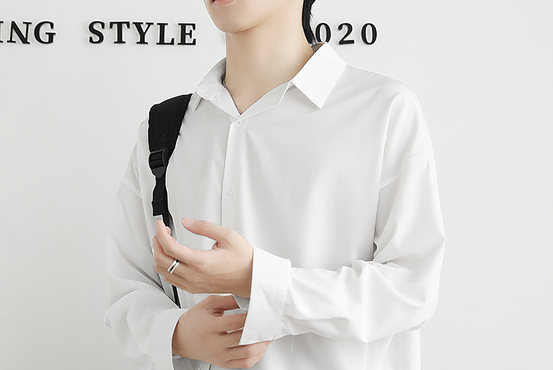 느슨한 얼음 실크 포장 된 검은 셔츠 남자 긴팔 가을 유행 Dk 남자 코트 캐주얼 남성 흰색 셔츠