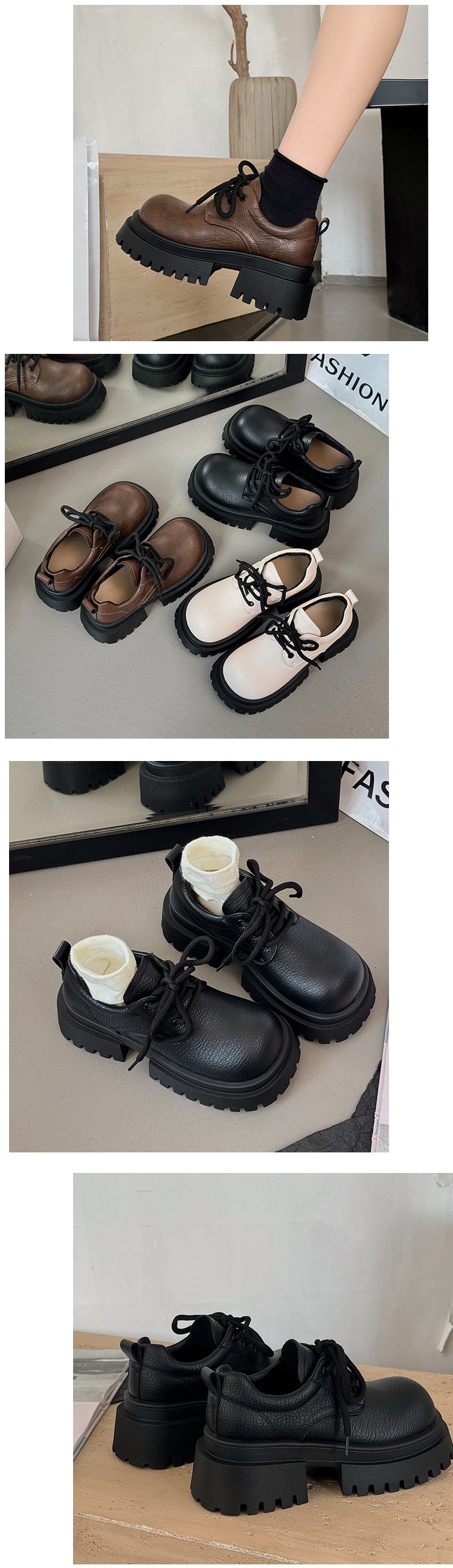빈티지 다크 브라운 영국 스타일 작은 가죽 신발 여성 2025 봄 새로운 고층 두꺼운 밑창 작은 레이스 업 신발스토어 가기