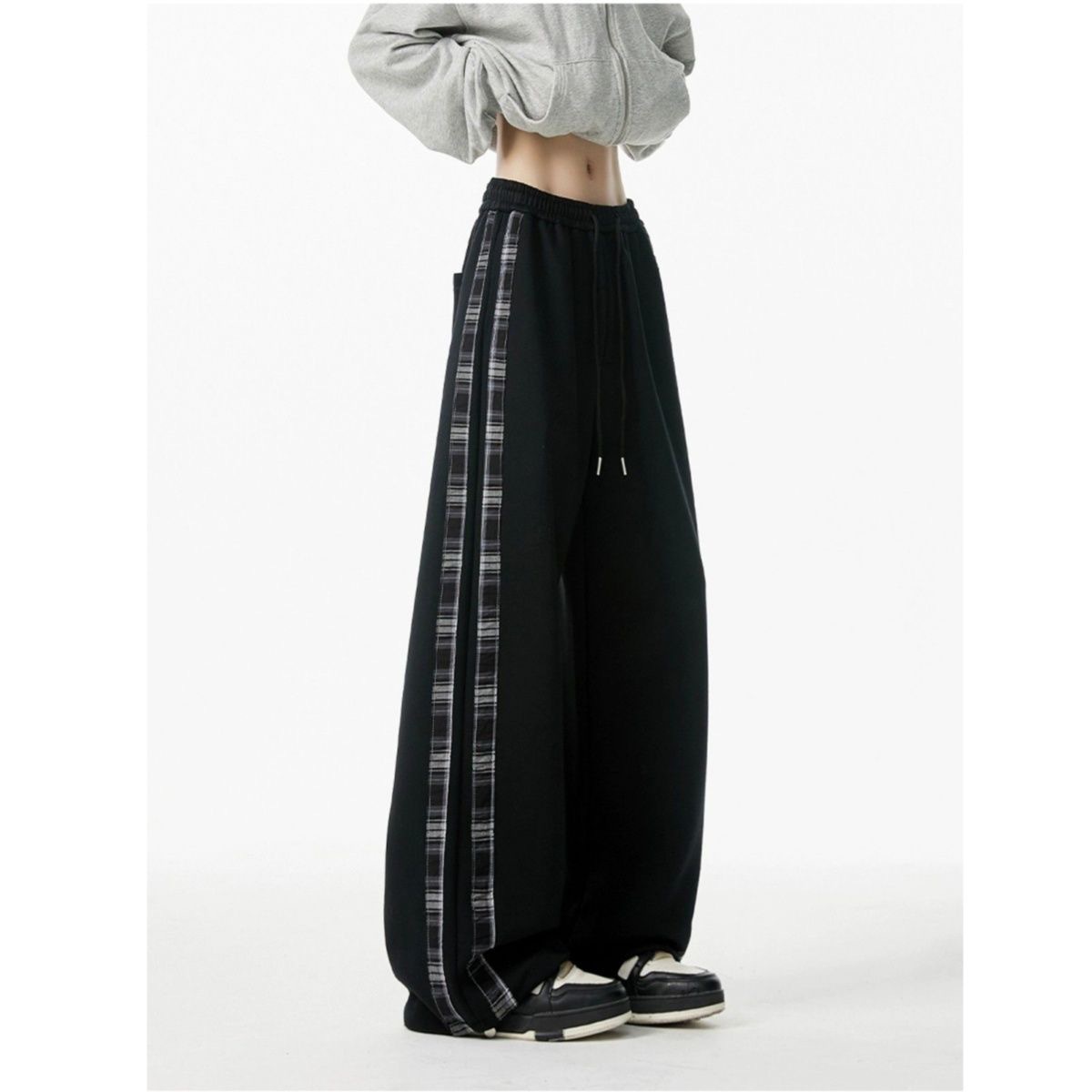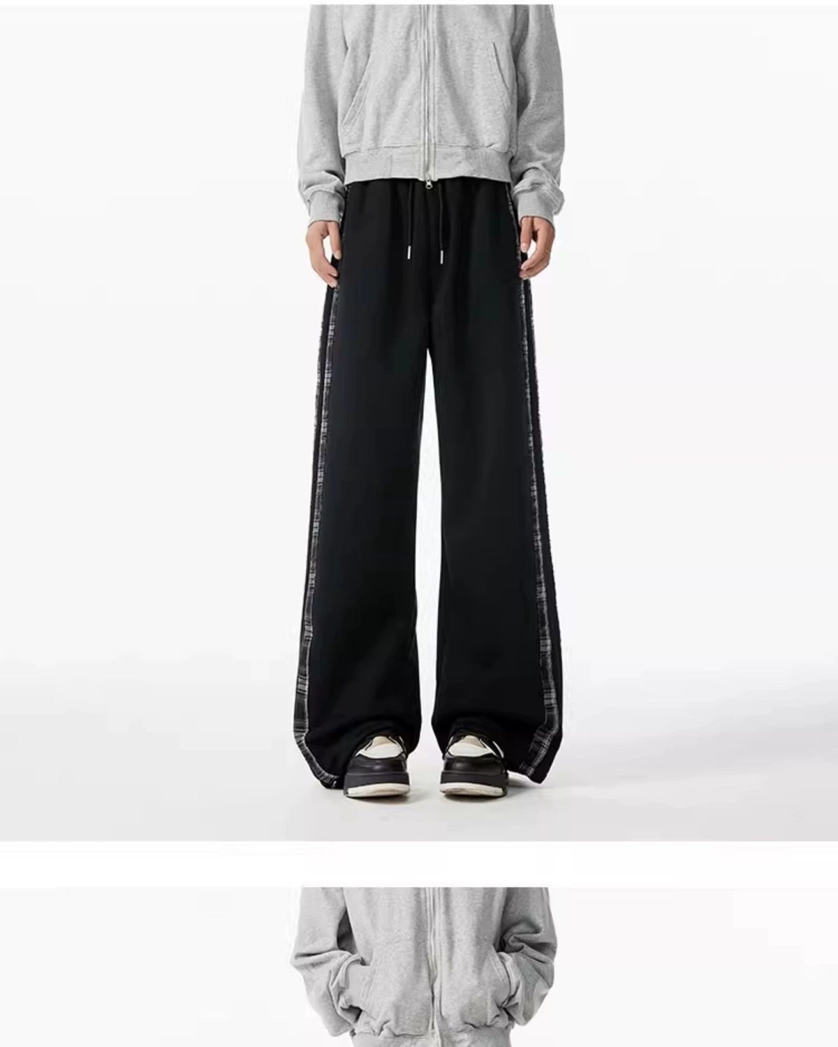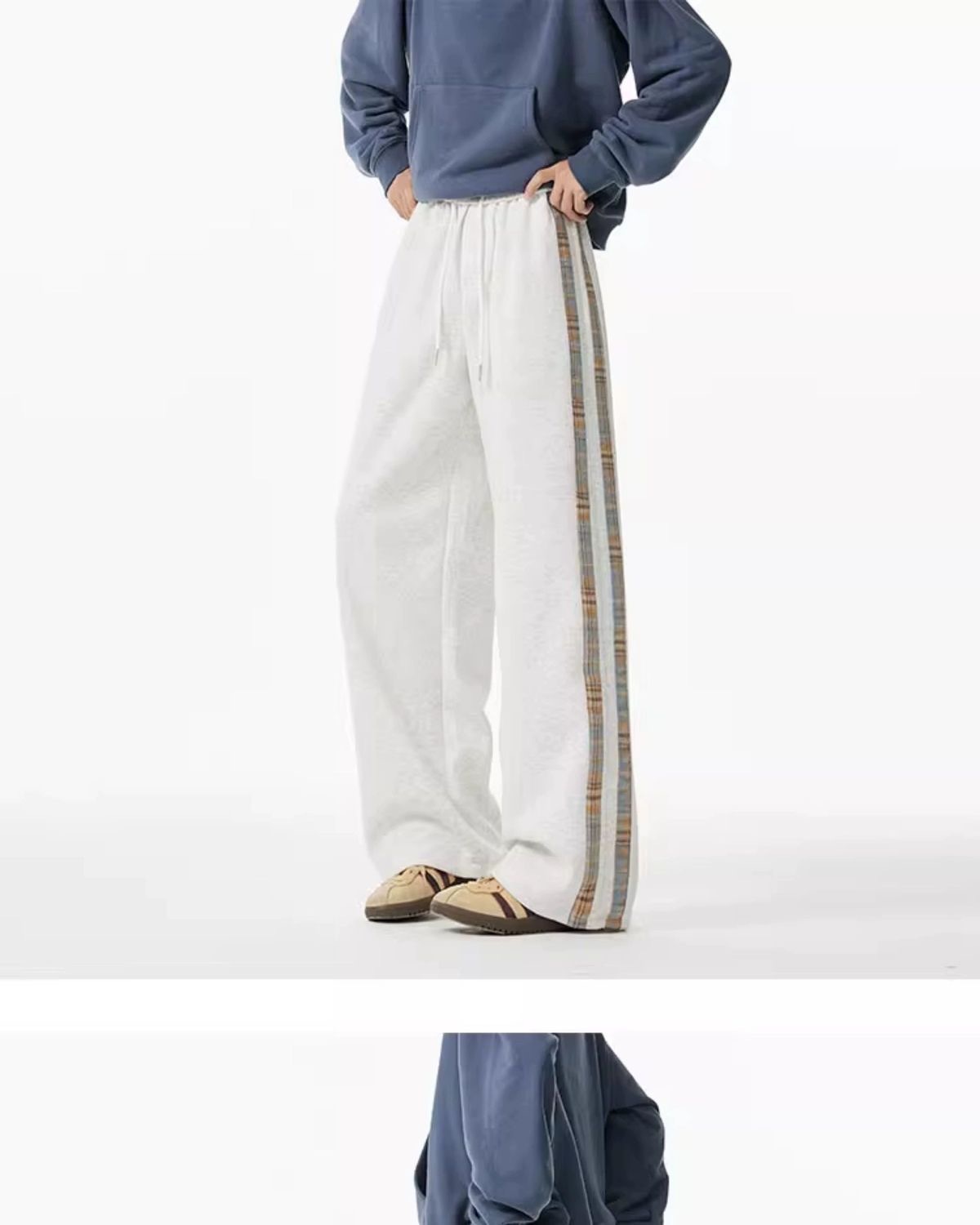 아메리칸 스타일 레트로 캐주얼 바지 남자 2025 년 봄과 가을 새로운 넓은 다리 줄무늬 바지 느슨한 스트레이트 긴 유행 바지