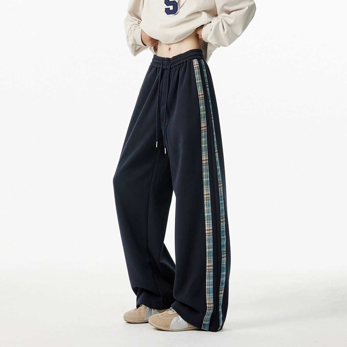 아메리칸 스타일 레트로 캐주얼 바지 남자 2025 년 봄과 가을 새로운 넓은 다리 줄무늬 바지 느슨한 스트레이트 긴 유행 바지스토어 가기
