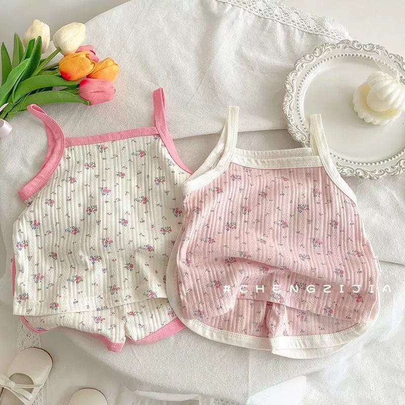여자 아기 25 여름 달콤한 공주 슬링 최고 반바지 세트 아기 귀여운 꽃 옷 투피스 세트스토어 가기
