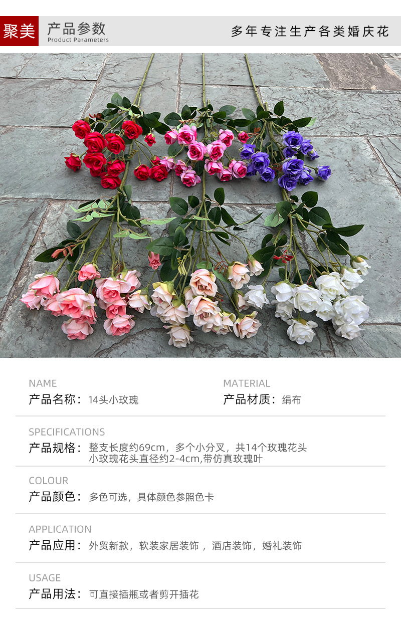 2025 새로운 작은 장미 대외 무역 14 작은 장미 결혼식 꽃 가정 장식 가짜 꽃 도매