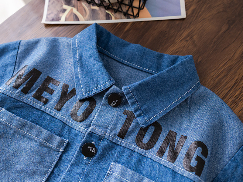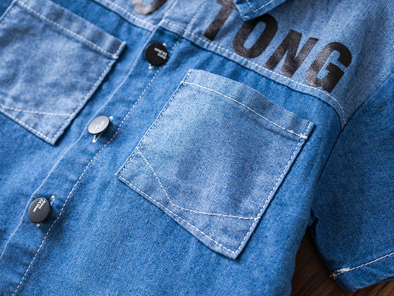 소년 여름 데님 반팔 세트 2025 새로운 어린이 서양식 아기 여름 얇은 셔츠 투피스 유행 세트스토어 가기