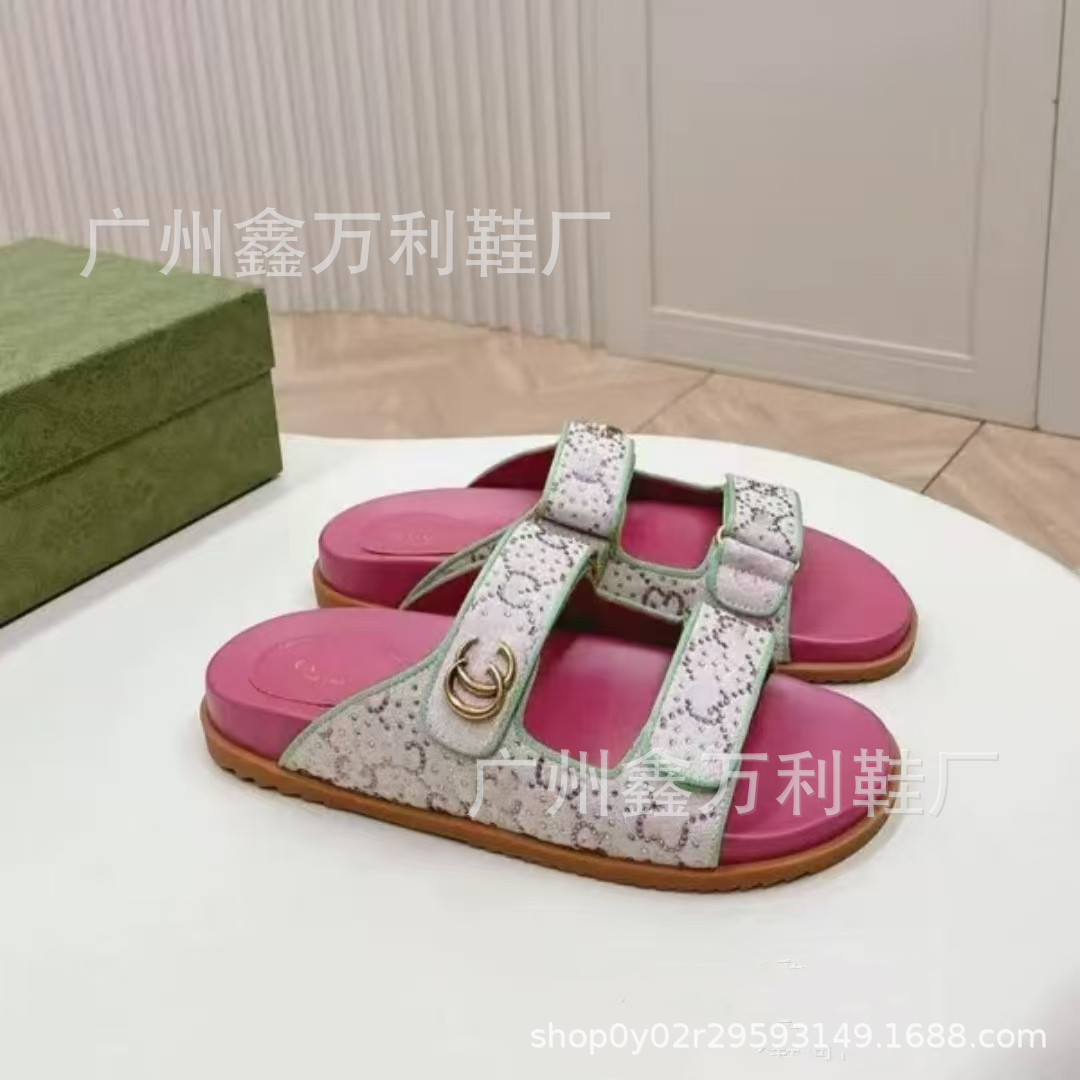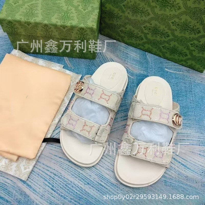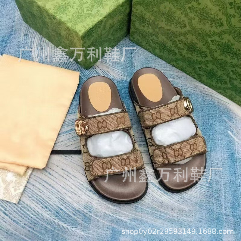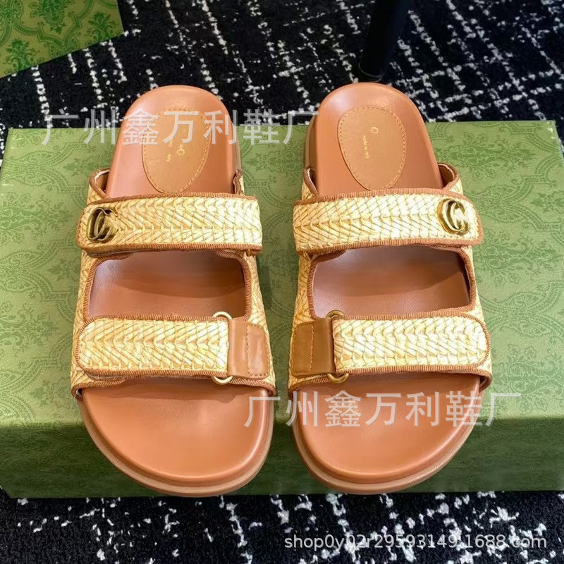 G 패밀리 2024 여름 새 샌들 여성 벨크로 오픈 발가락 올매치 패션 로마 비치 슬리퍼 두꺼운 단독 높이 증가