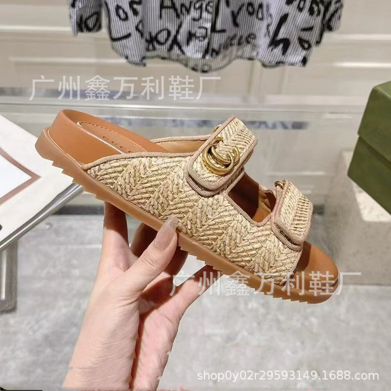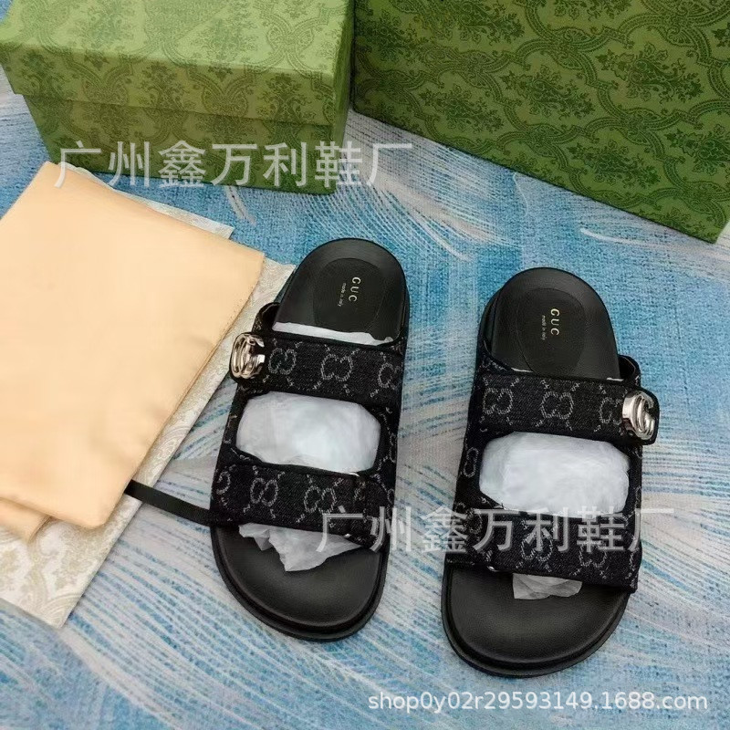 G 패밀리 2024 여름 새 샌들 여성 벨크로 오픈 발가락 올매치 패션 로마 비치 슬리퍼 두꺼운 단독 높이 증가스토어 가기
