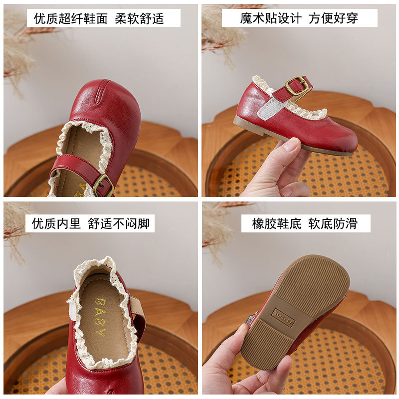 여자 가죽 신발 샤넬 스타일 공주 신발 어린이 편안한 올 매치 거짓 발가락 싱글 레이어 신발 레이스 벨크로 메리 제인 신발스토어 가기