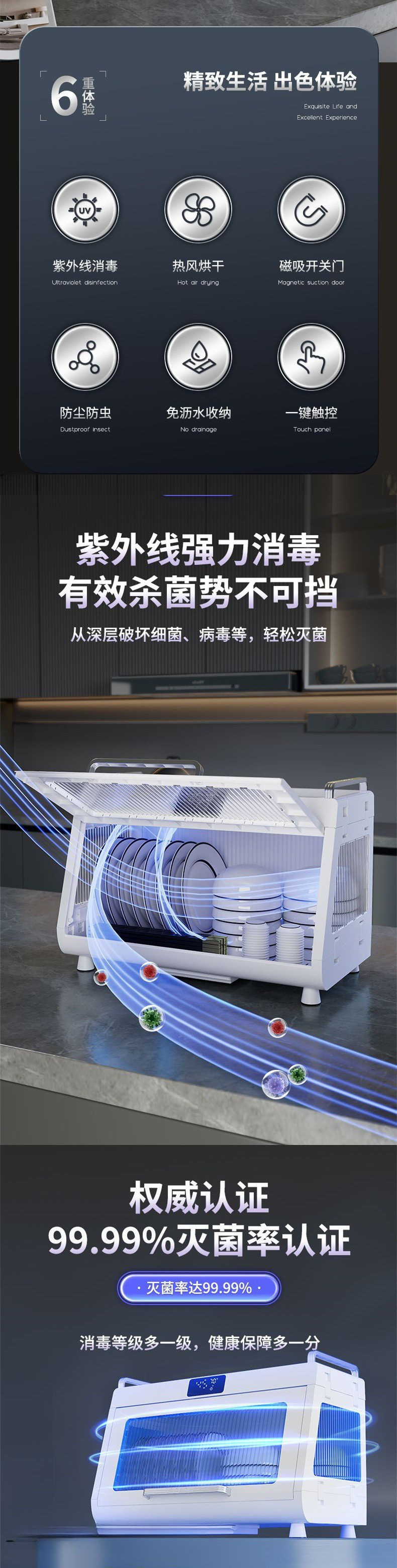 데스크탑 소독용 캐비닛 가정용 빠른 건조 자동 통합 미니 주방 그릇 젓가락 작은 UV 프리 드라이