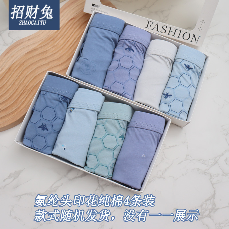 • 남성용 스판덱스 헤드 순면 프린트 4팩 박스