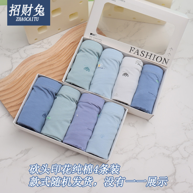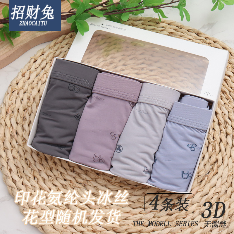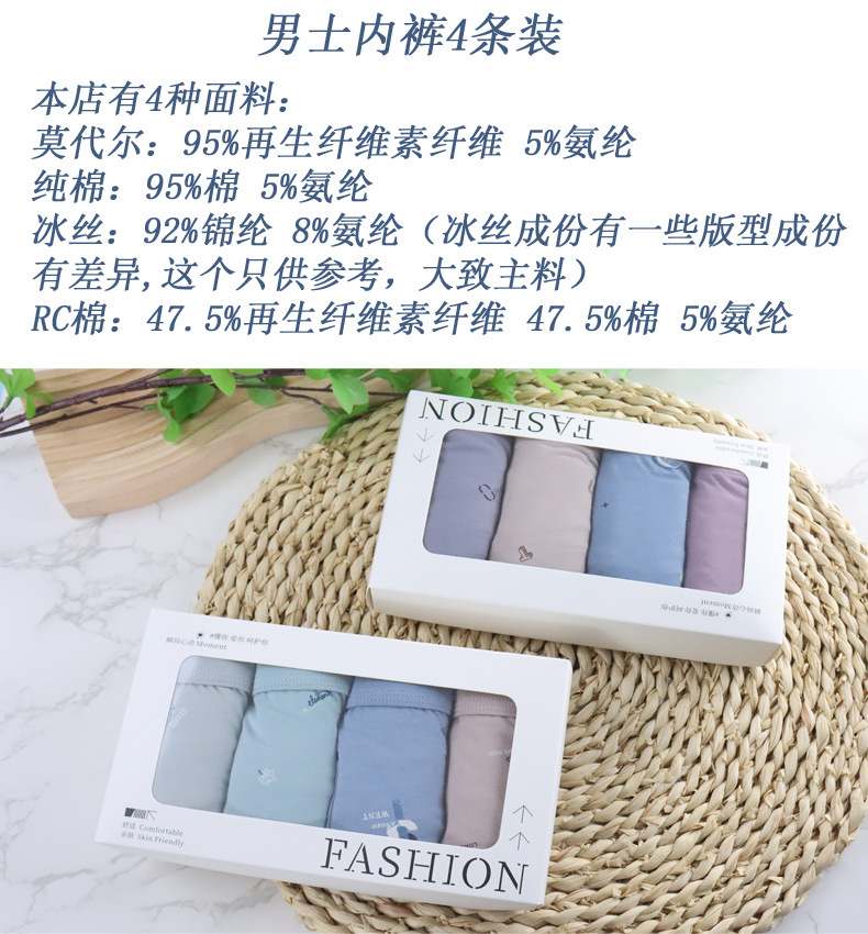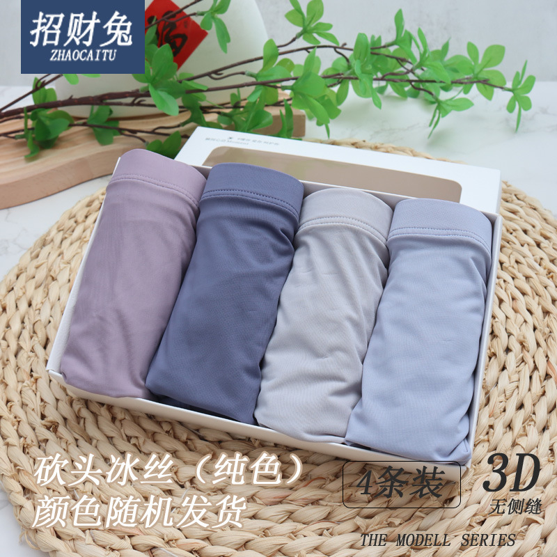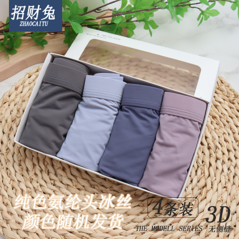 남성 속옷 4 박스 모델 면화 남성 속옷 복서 속옷 통기성 아이스 실크 복서 반바지 도매스토어 가기