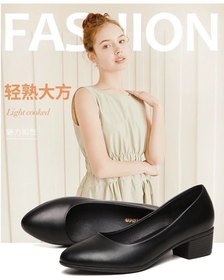 피곤하지 않은 에티켓 작업 신발 여성 블랙 전문 호텔 작업 신발 인터뷰 두꺼운 가죽 신발 싱글 신발스토어 가기