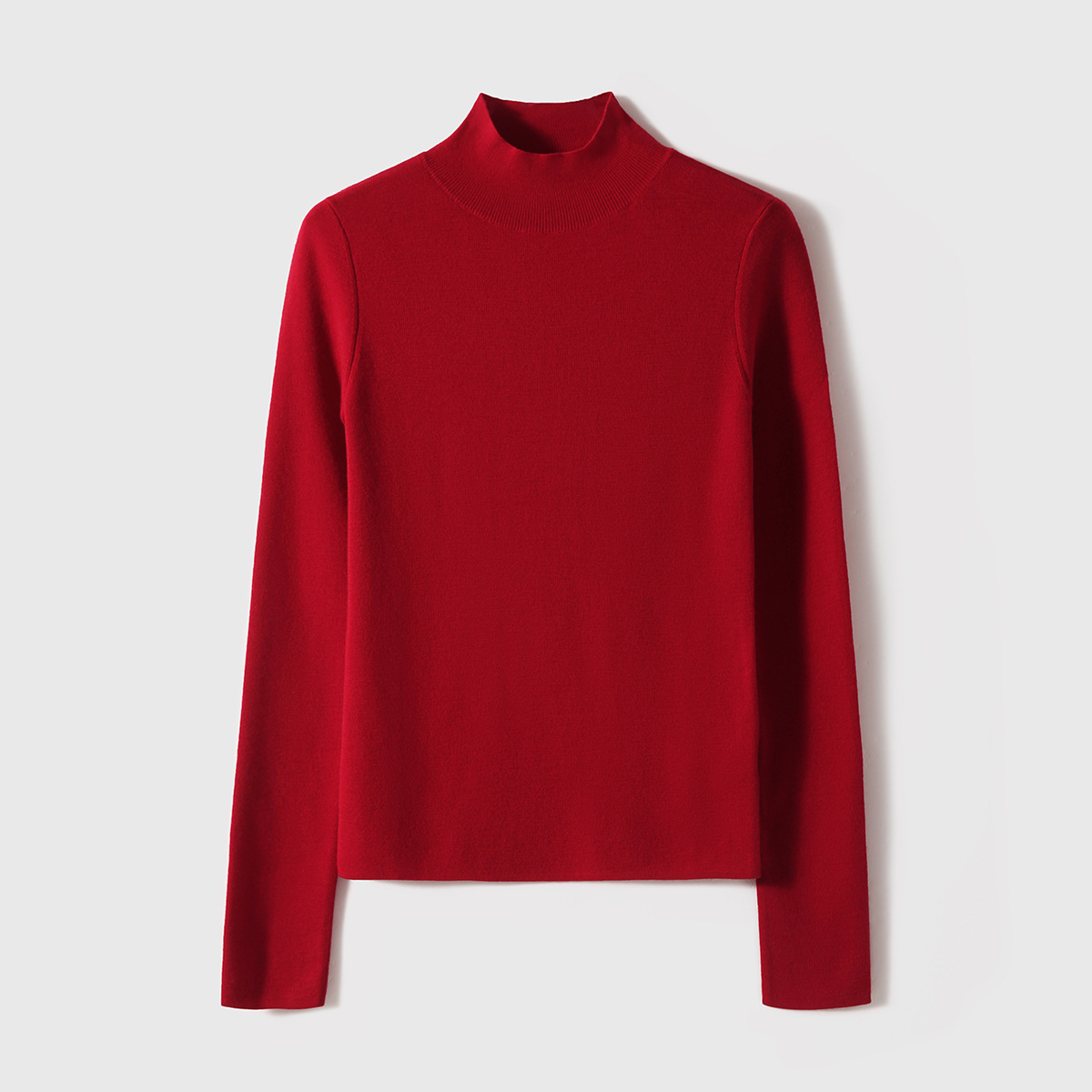 2025 가을과 겨울 새로운 반 터틀넥 니트 베이스 긴팔 티셔츠 여성용 세련된 레드 탑 울 셔츠스토어 가기