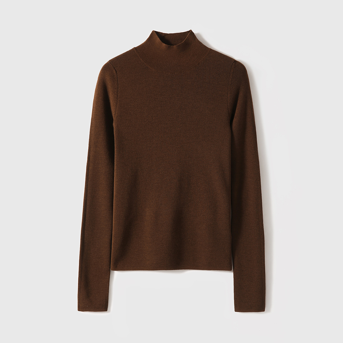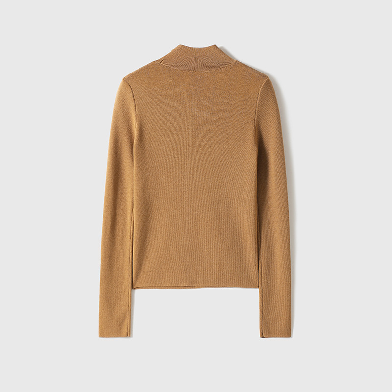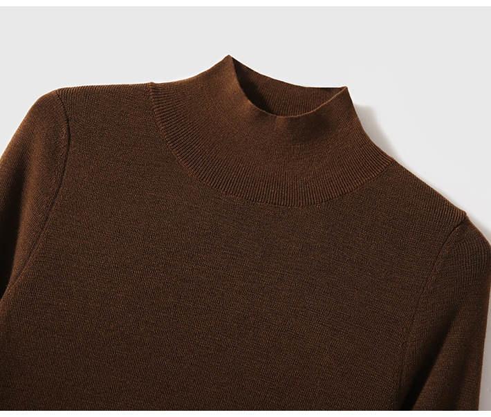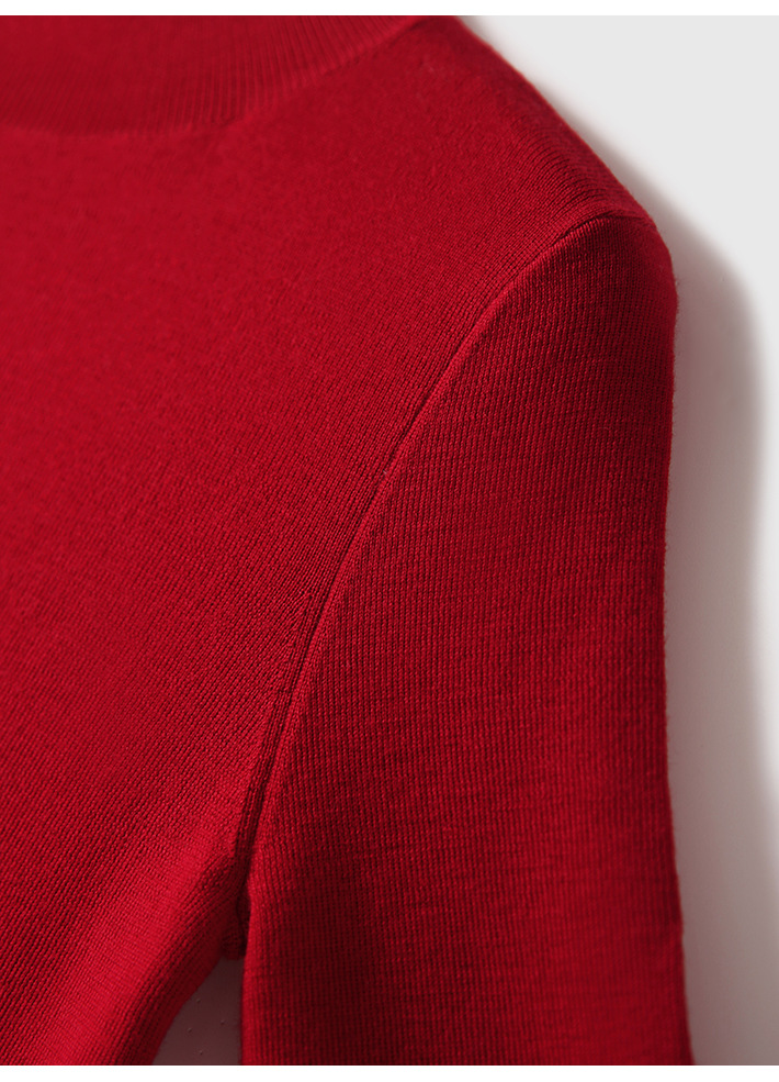 2025 가을과 겨울 새로운 반 터틀넥 니트 베이스 긴팔 티셔츠 여성용 세련된 레드 탑 울 셔츠
