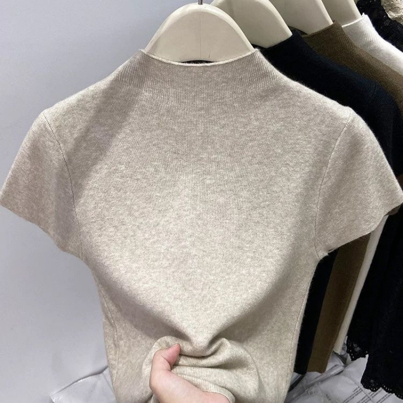 도파민 스파이스 걸스 블랙 하프 하이 칼라 어깨 짧은 소매 셔츠 여성의 여름 슬림베이스 셔츠 짧은 소매 탑스토어 가기