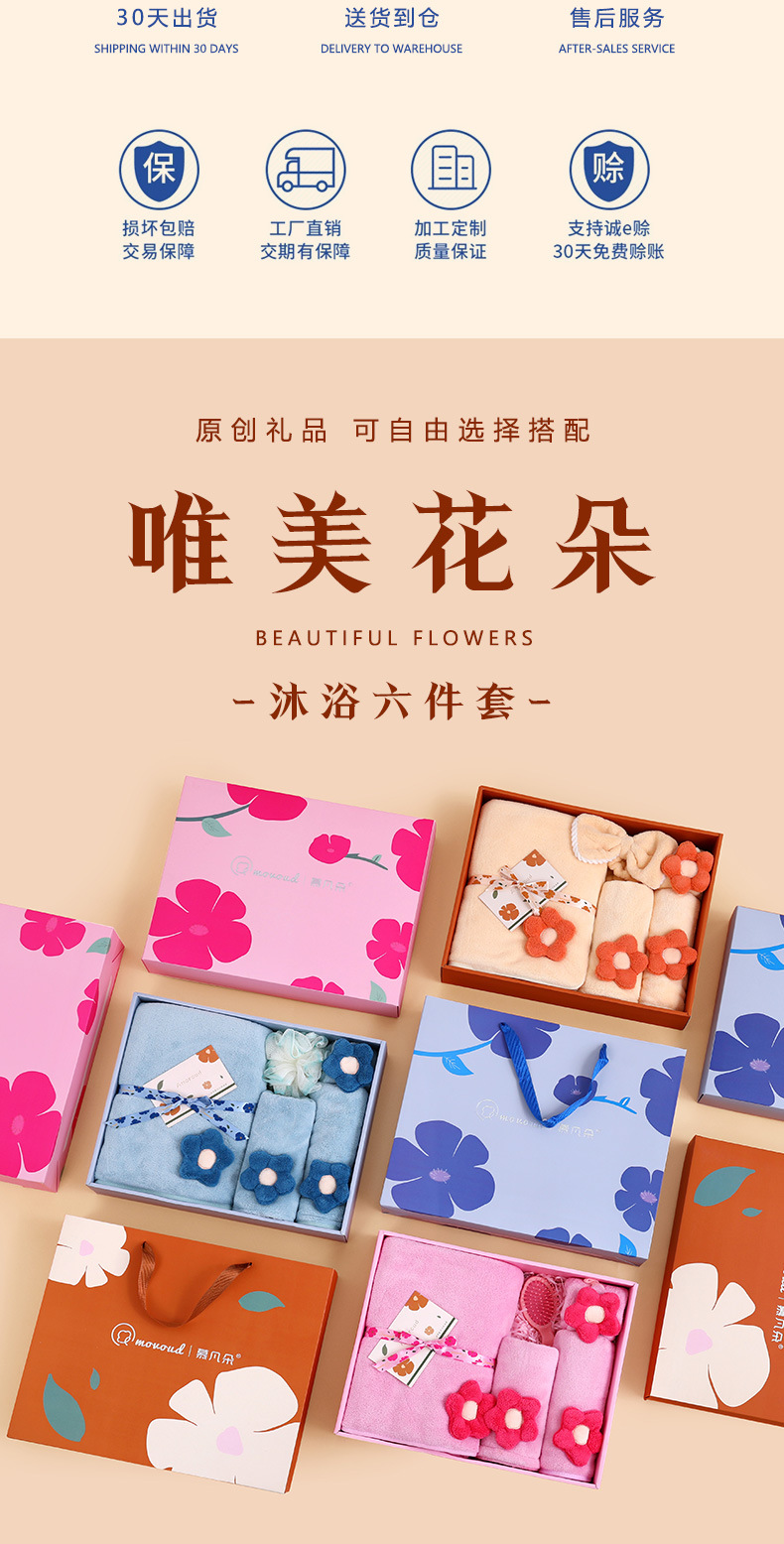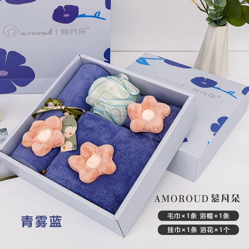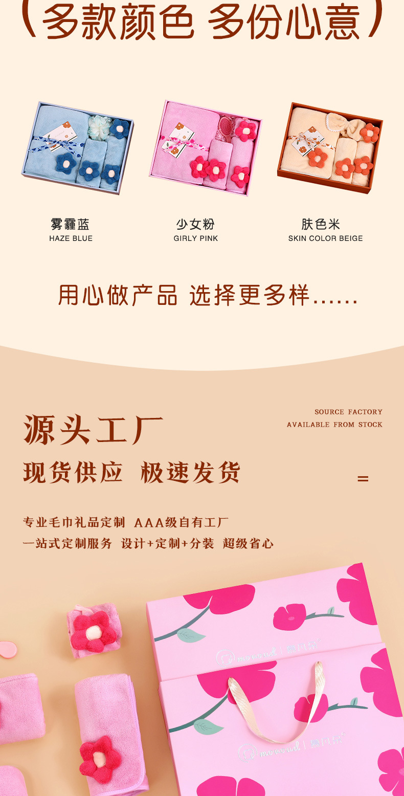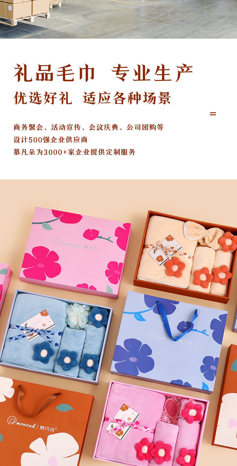 Mu Fanduo 새로운 해바라기 산호 양털 목욕 타월 세트 선물 상자 세트 세 선물 회사 선물스토어 가기