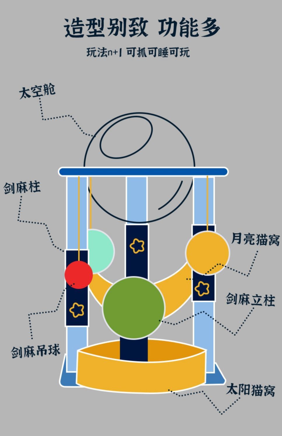 • 별이 빛나는 하늘 초대형 고양이 클라이밍 프레임 [우주 캡슐] + 달 둥지