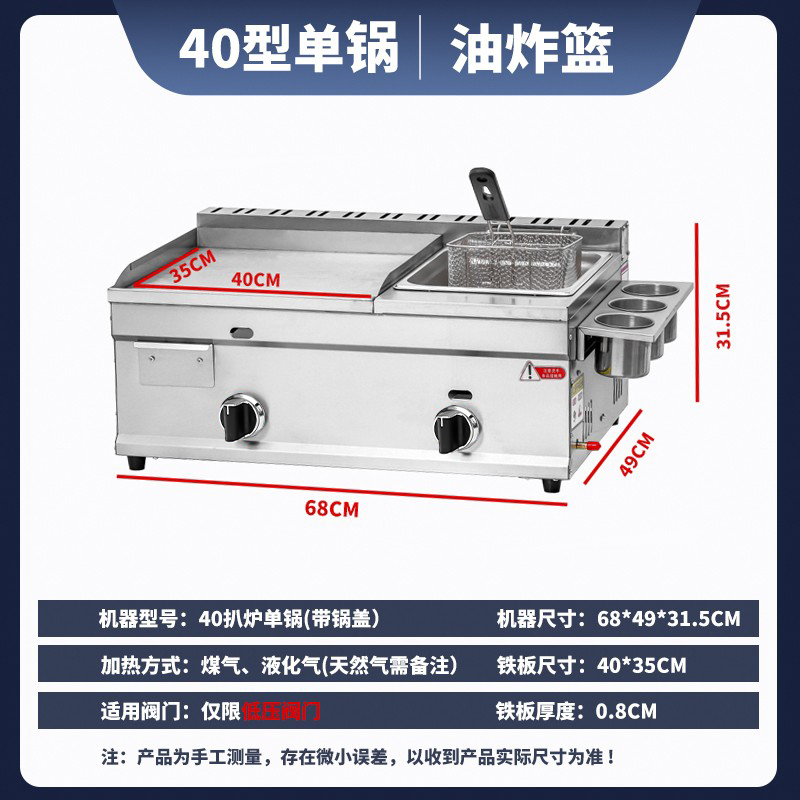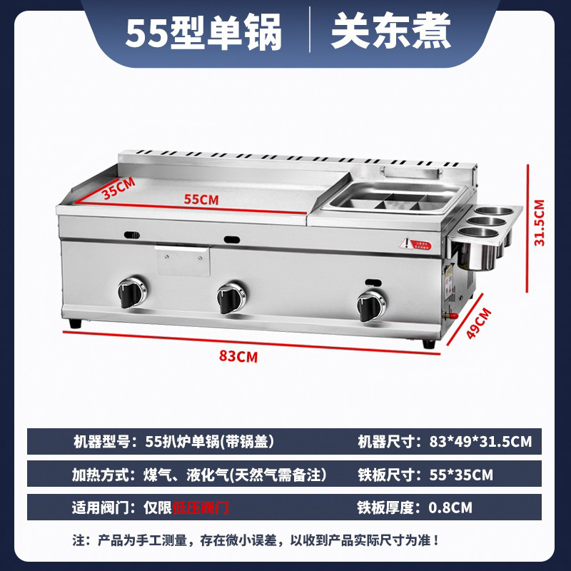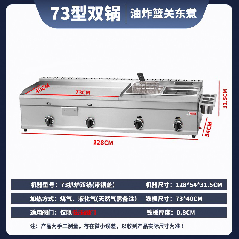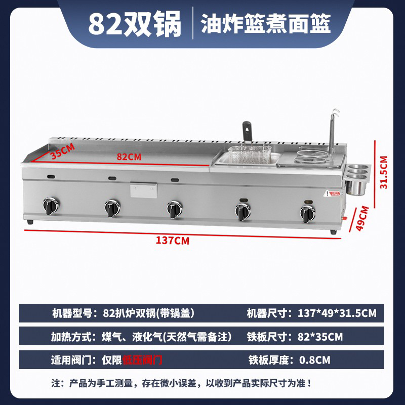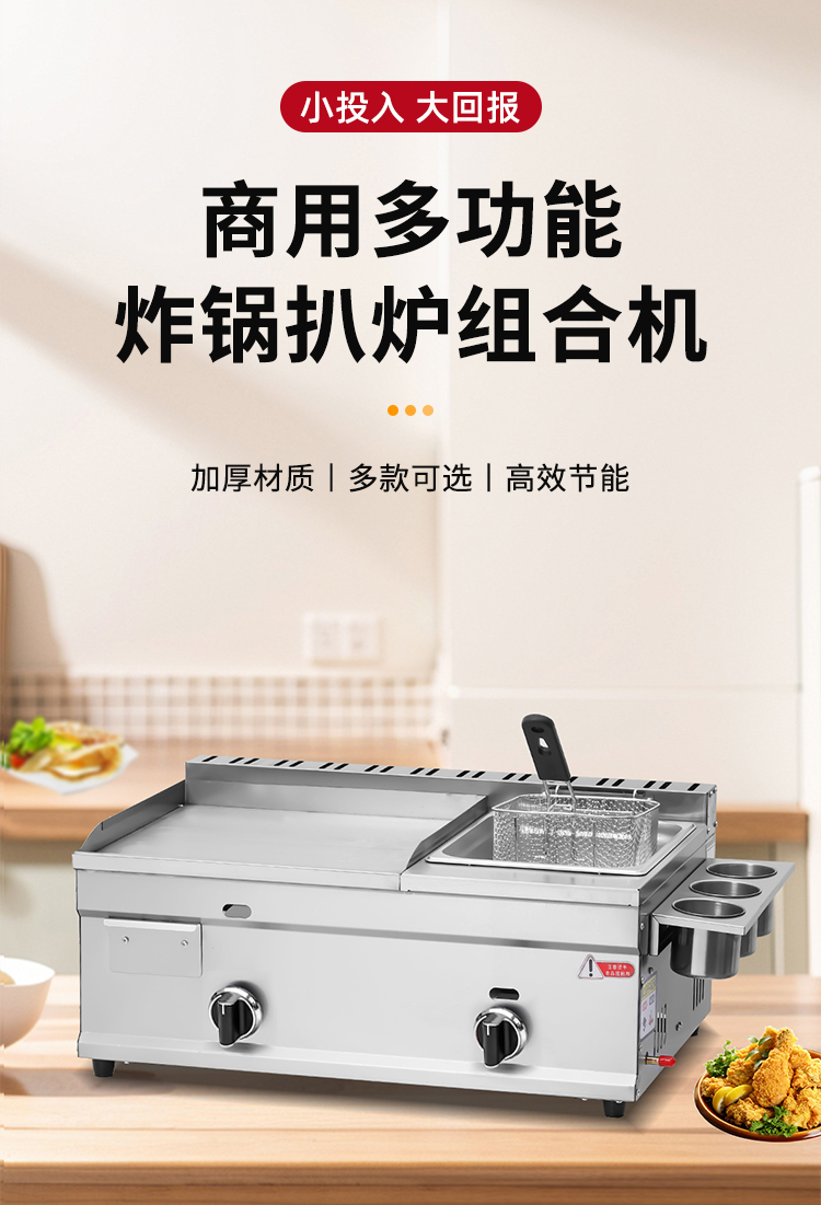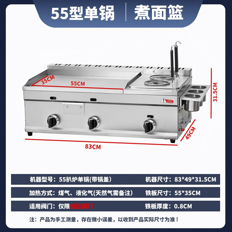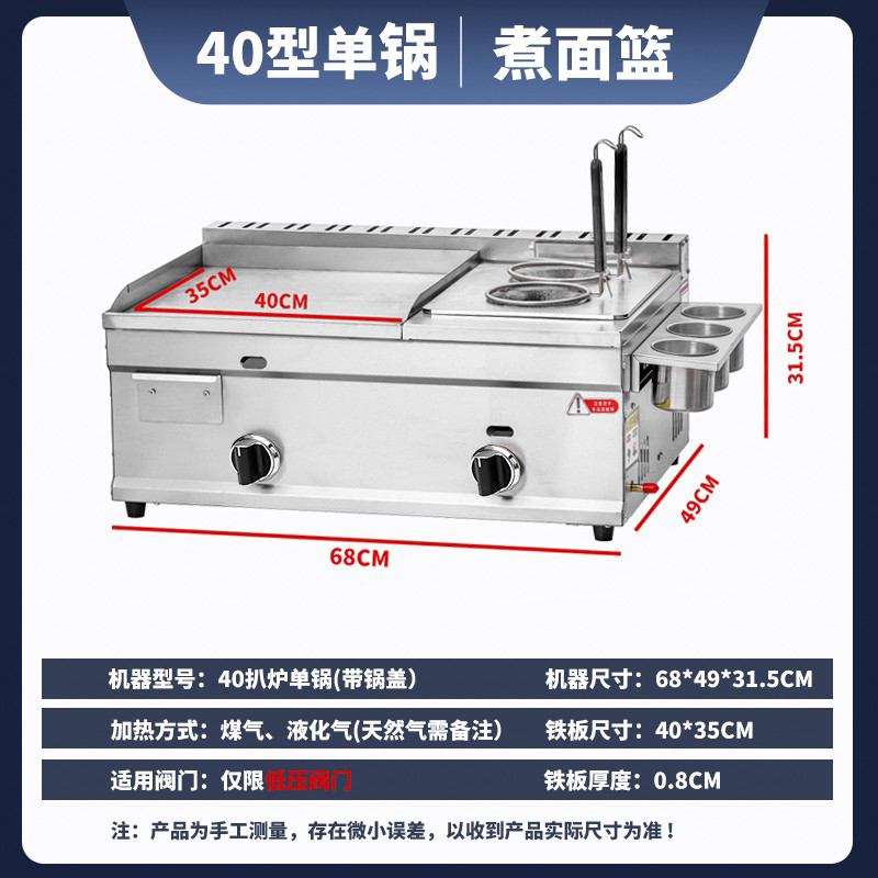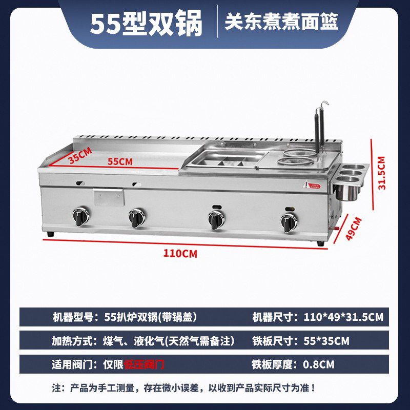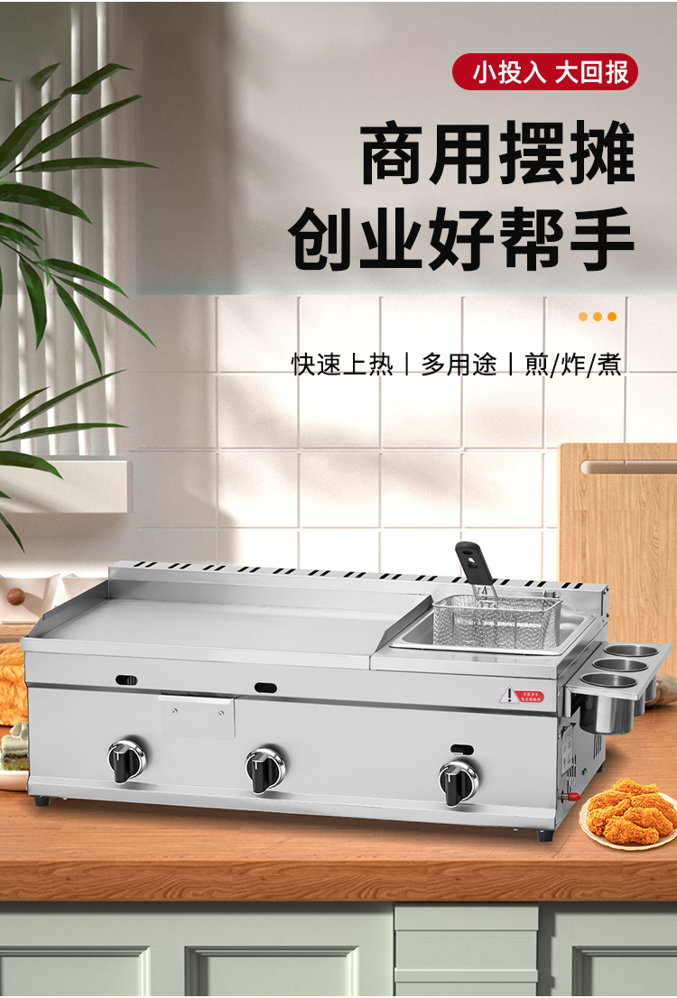 상업용 가스 스테이크 프라이어 결합 된 기계 스낵 스톨 장비 가스 테판 야키 핸드 헬드 케이크 베이킹 콜드 국수 기계
