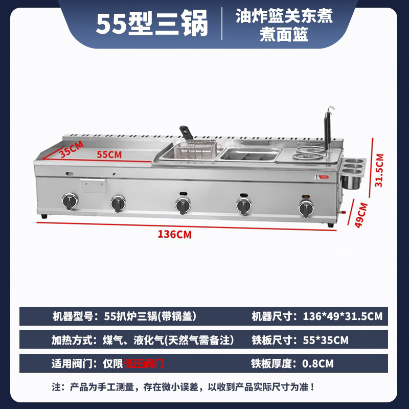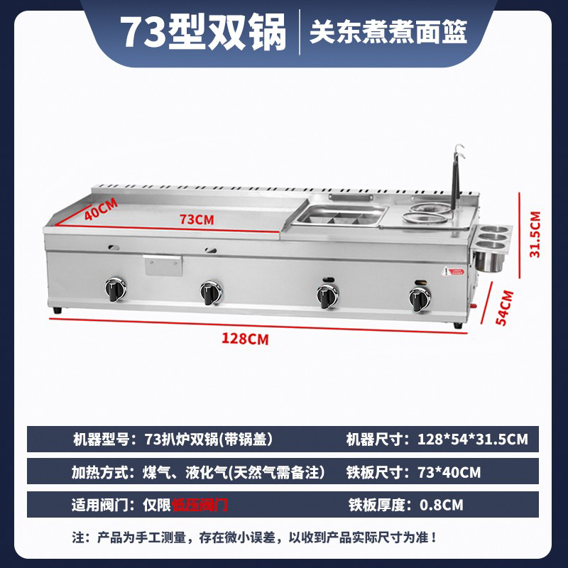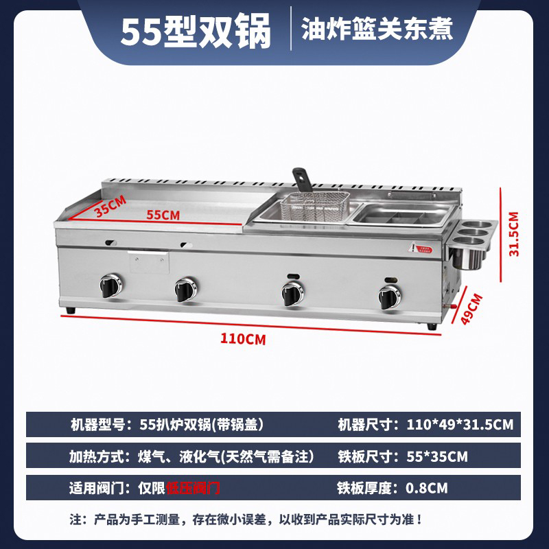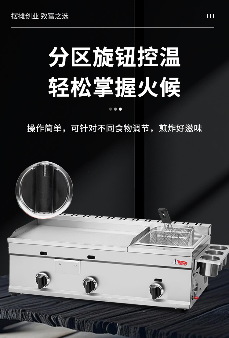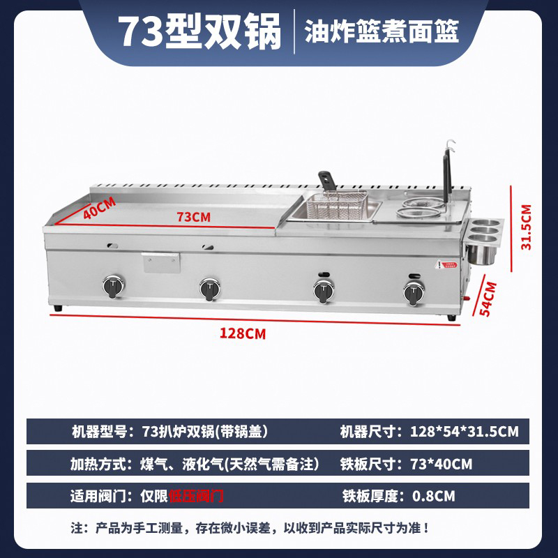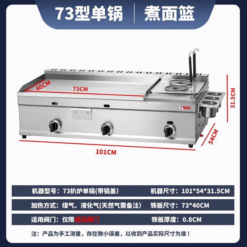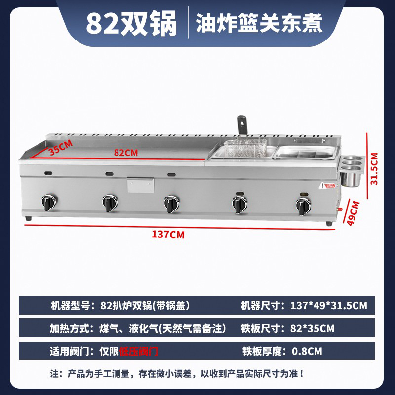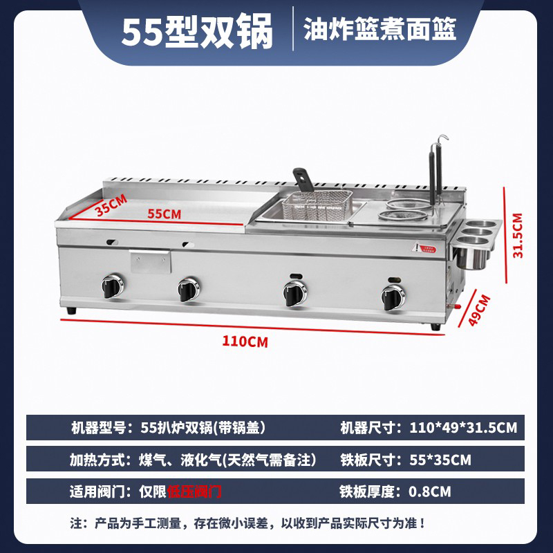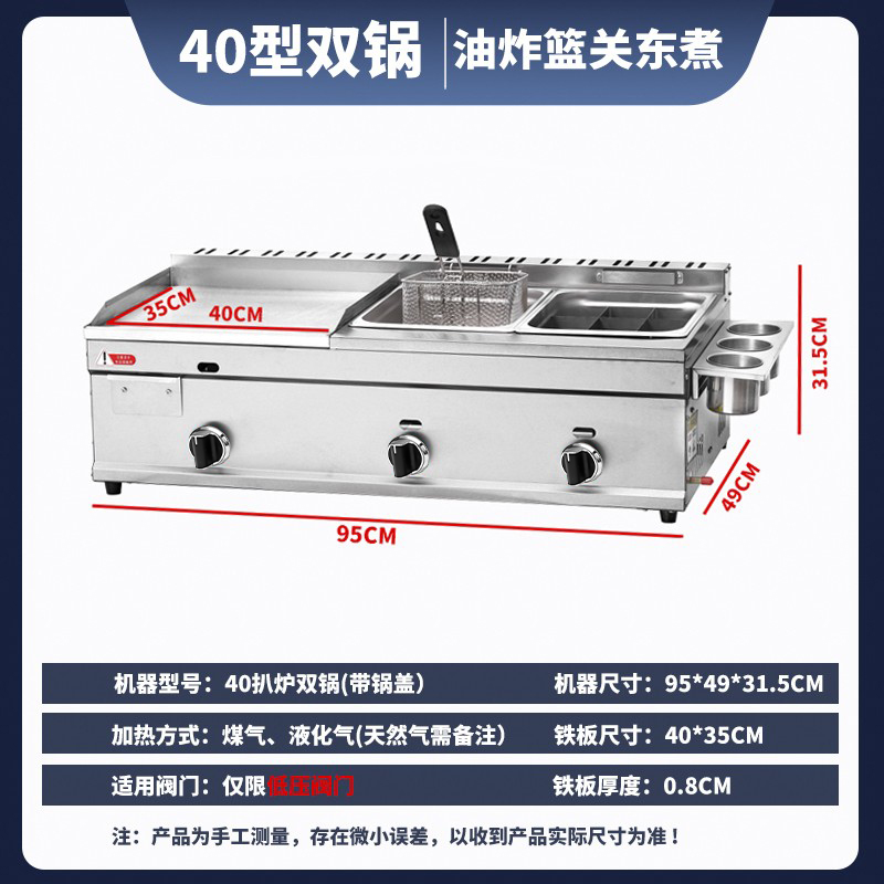 상업용 가스 스테이크 프라이어 결합 된 기계 스낵 스톨 장비 가스 테판 야키 핸드 헬드 케이크 베이킹 콜드 국수 기계